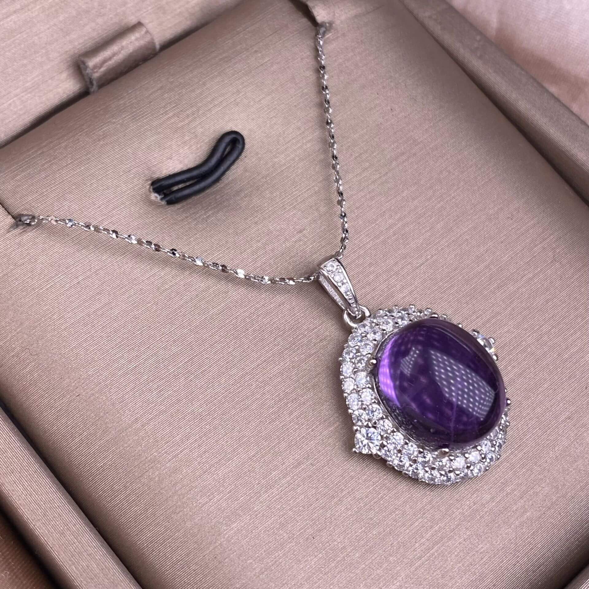 South Red, amethyst, purple dragon crystal, aquamarine pendant s925, silver inlaid with full diamonds, light luxury and exquisite women's collarbone chain pendant, simple and versatile for commuting