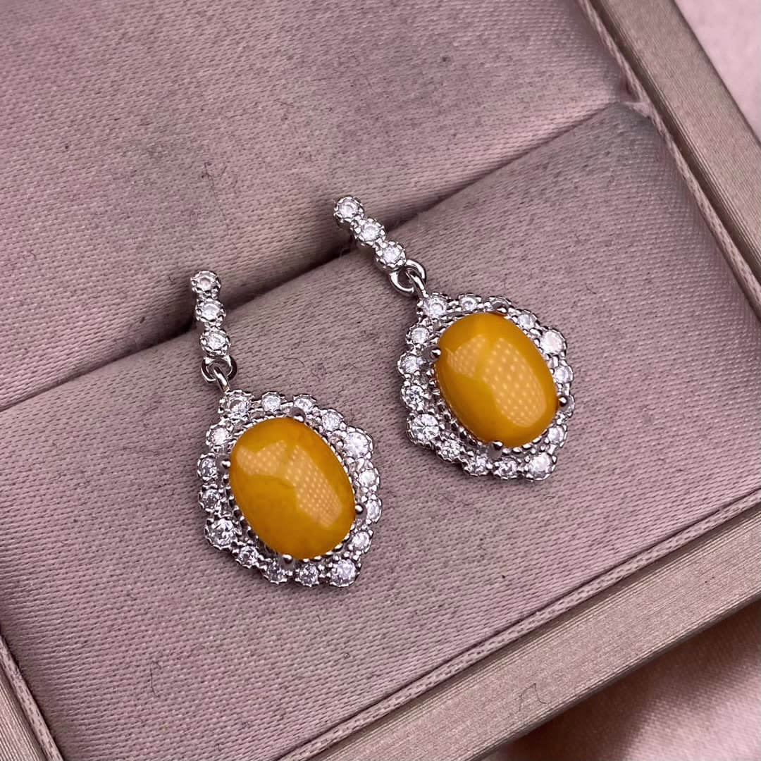 Old wax, Golden Sun, aquamarine, flower amber, citrine, Lapis lazuli, Amethyst, aquamarine, rose quartz, Grey moonlight, Golden Fortune Stone, Black shell Hetian jade, turquoise, Larima sea pattern stone, grape stone earrings S925