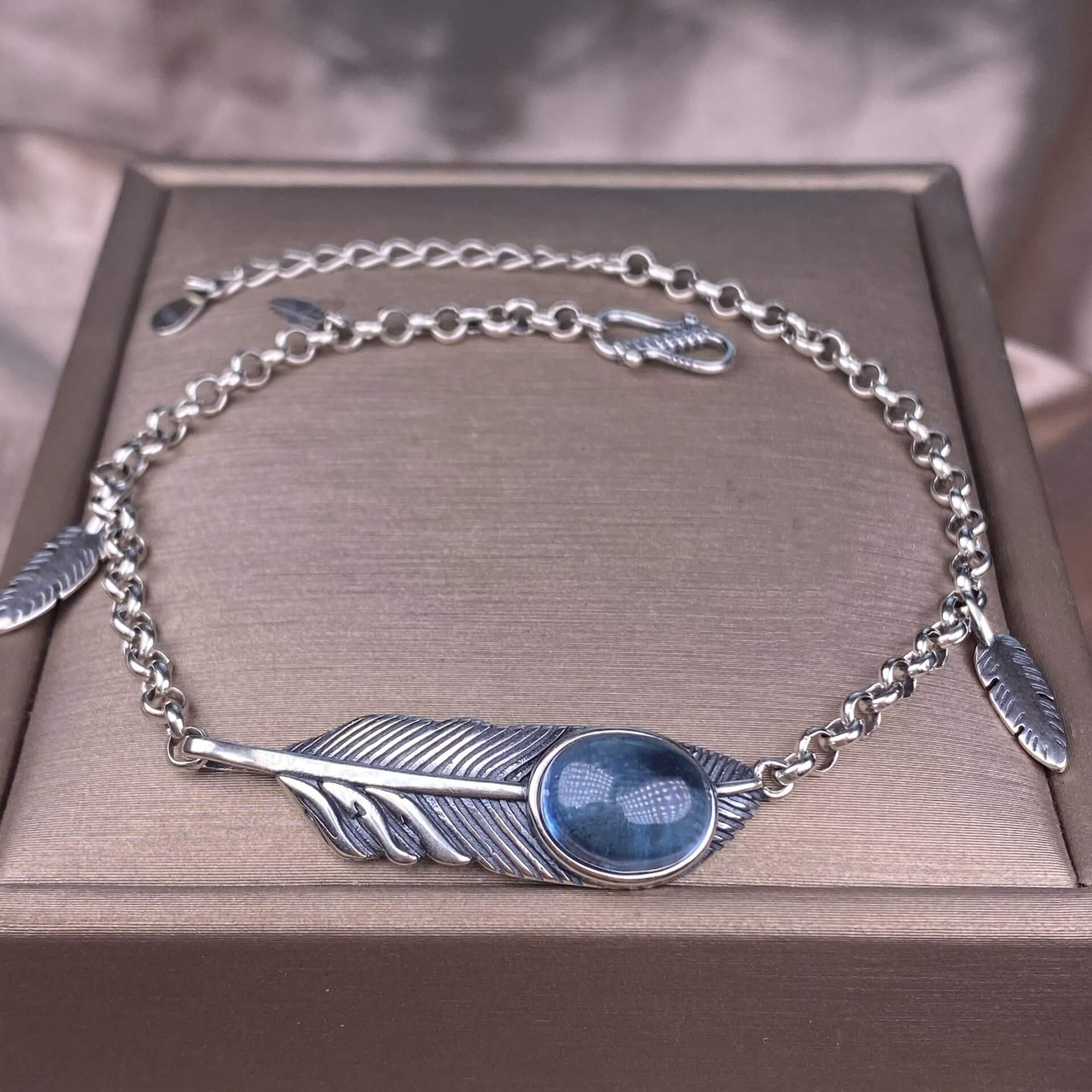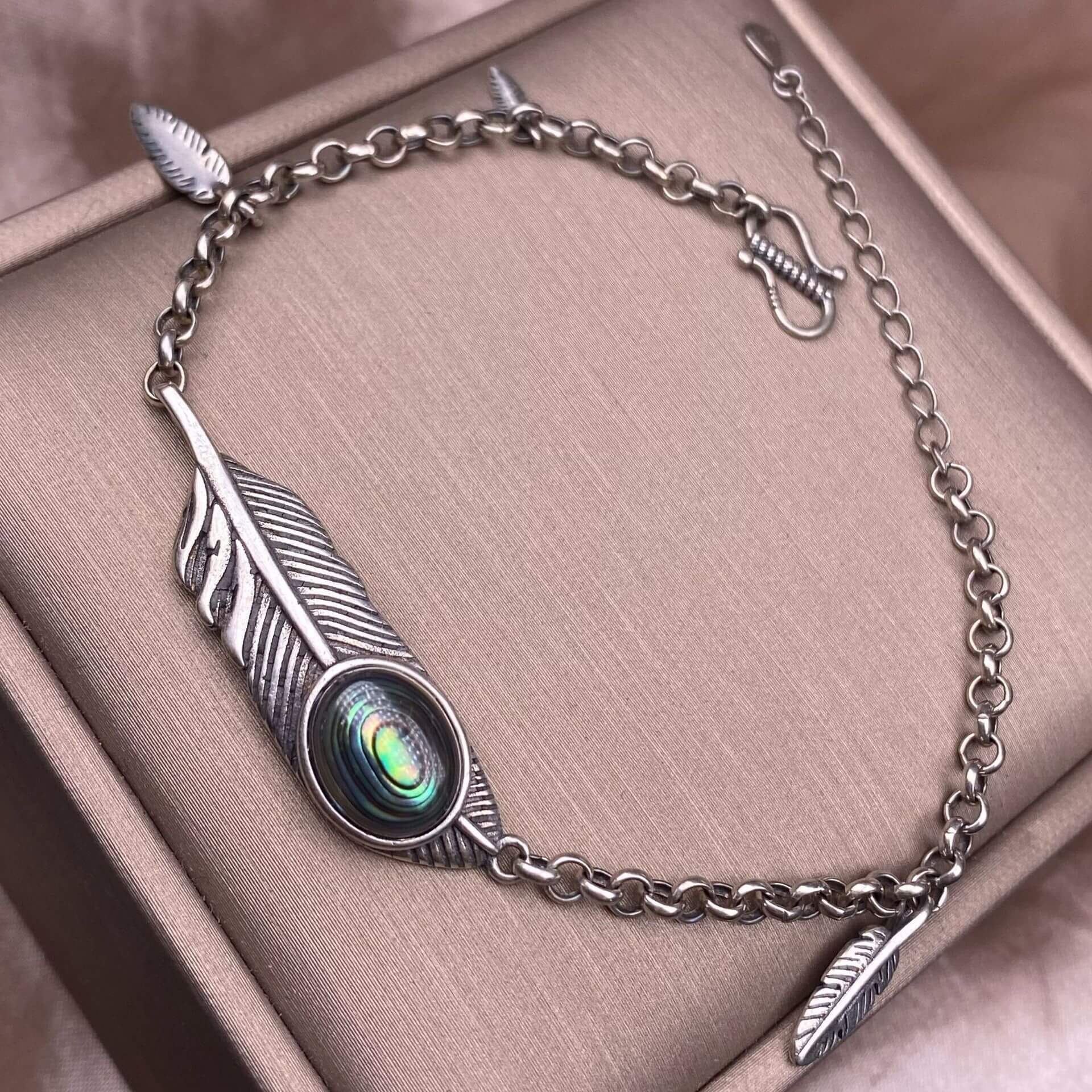 Abalone shells, old wax, amber, aquamarine Bracelet The s925 silver inlaid vintage silver distressed Nepalese feather-shaped shell jewelry has a strong lustrous effect