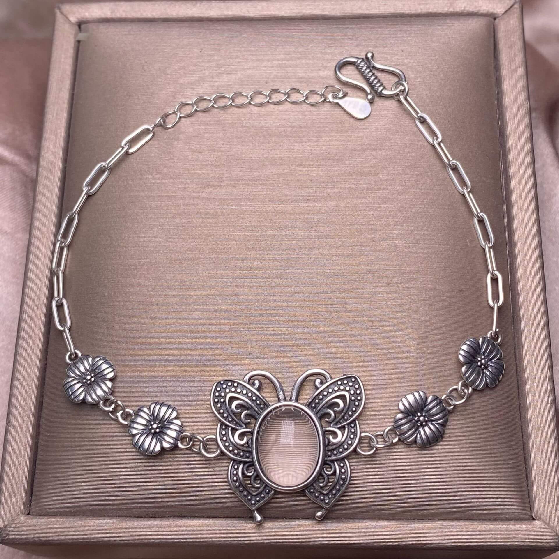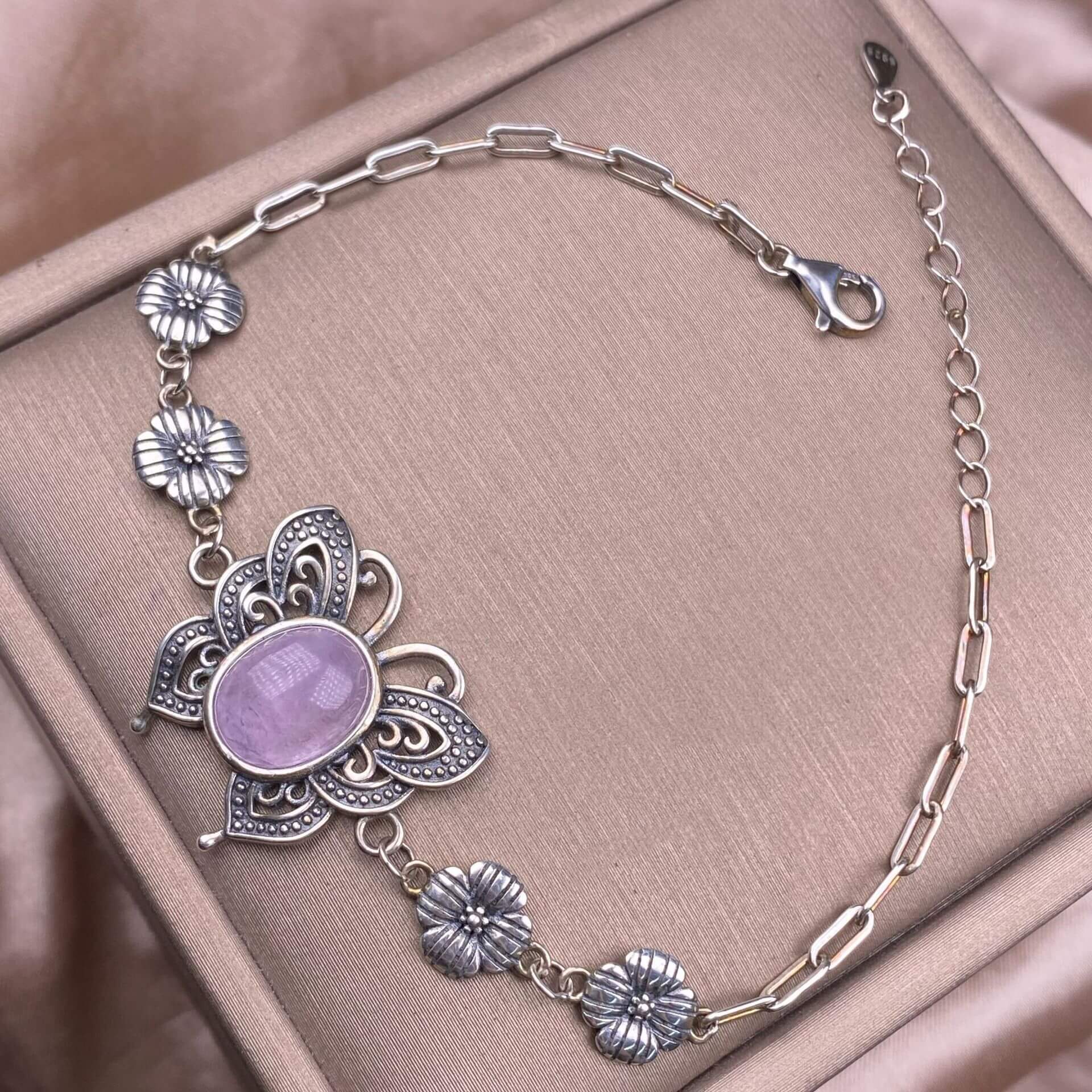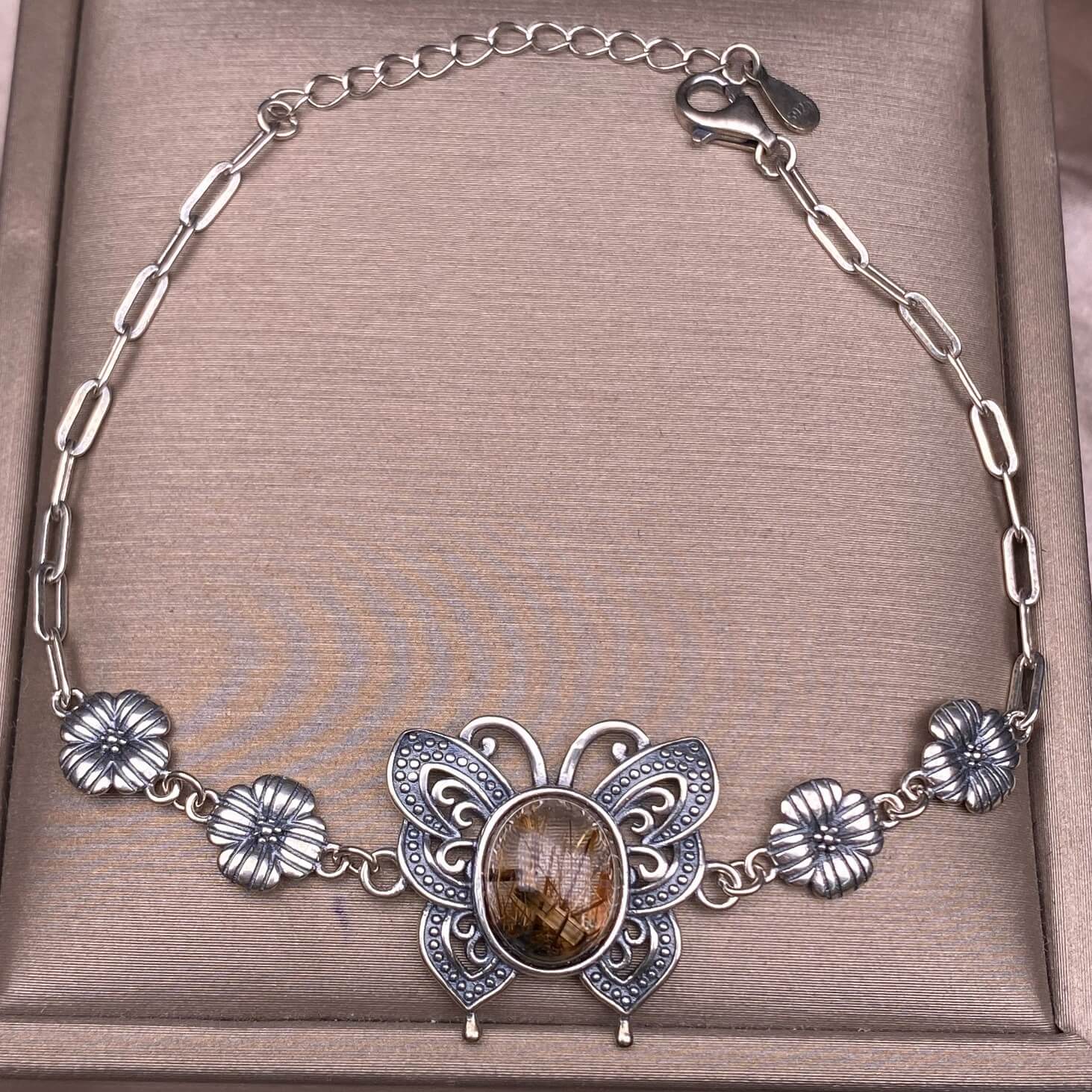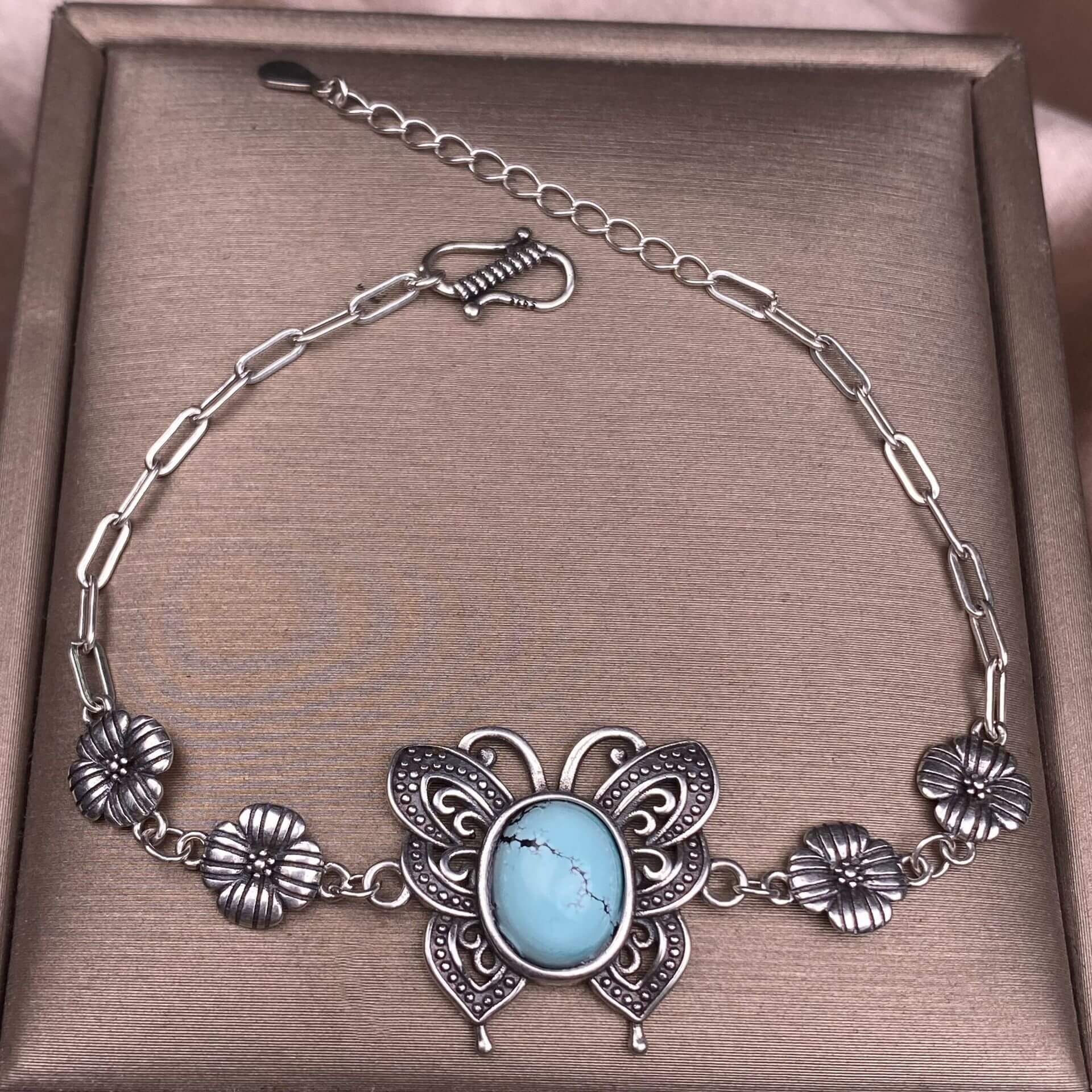 Turquoise, abalone shells, grey moonstone, copper hair crystal, rose quartz, grape stone, purple lithium oxide, opal, old wax, Larima Bracelet The s925 silver inlaid vintage silver butterfly-shaped shell jewelry has a strong lustrous effect