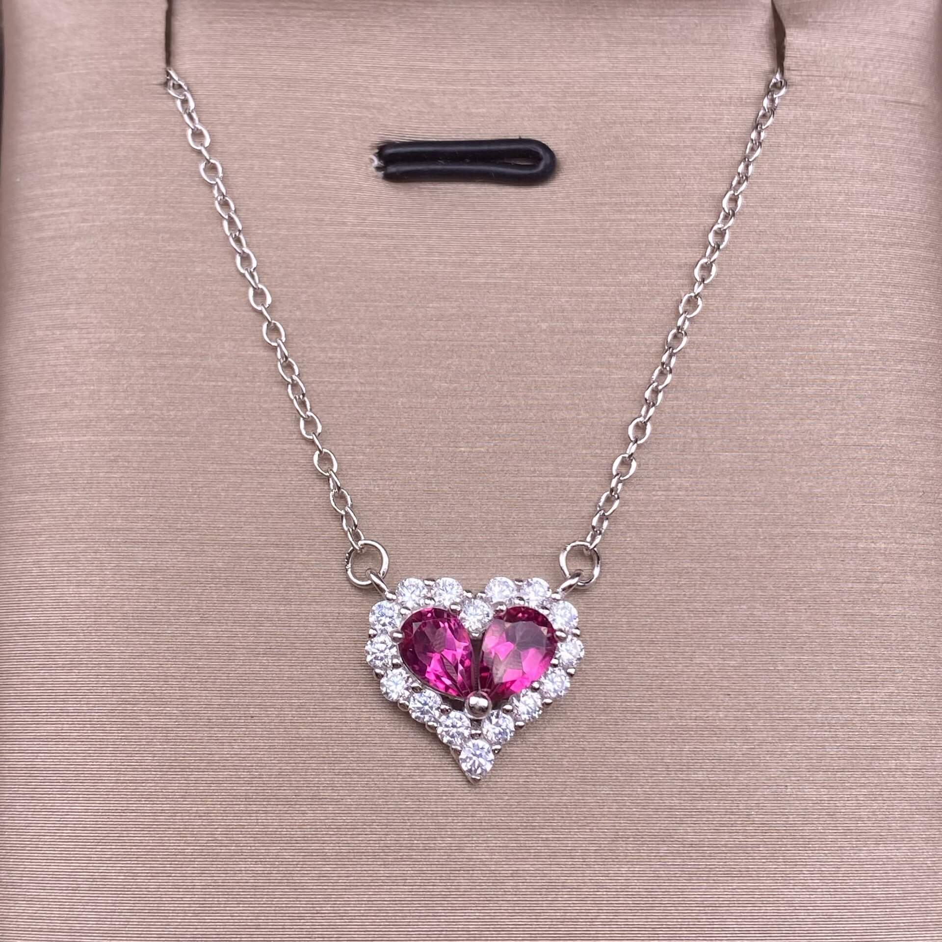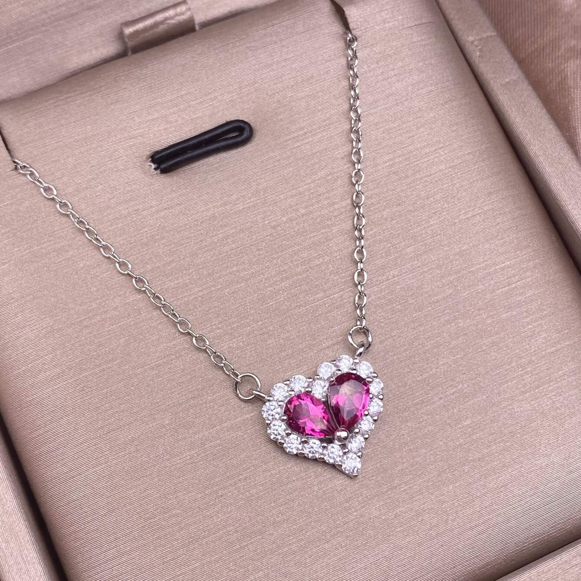 Black Opal Opal, Pink topaz, tourmaline S925 necklace, silver inlaid with full diamonds, exquisite light luxury evening wear chain fashionable office lady