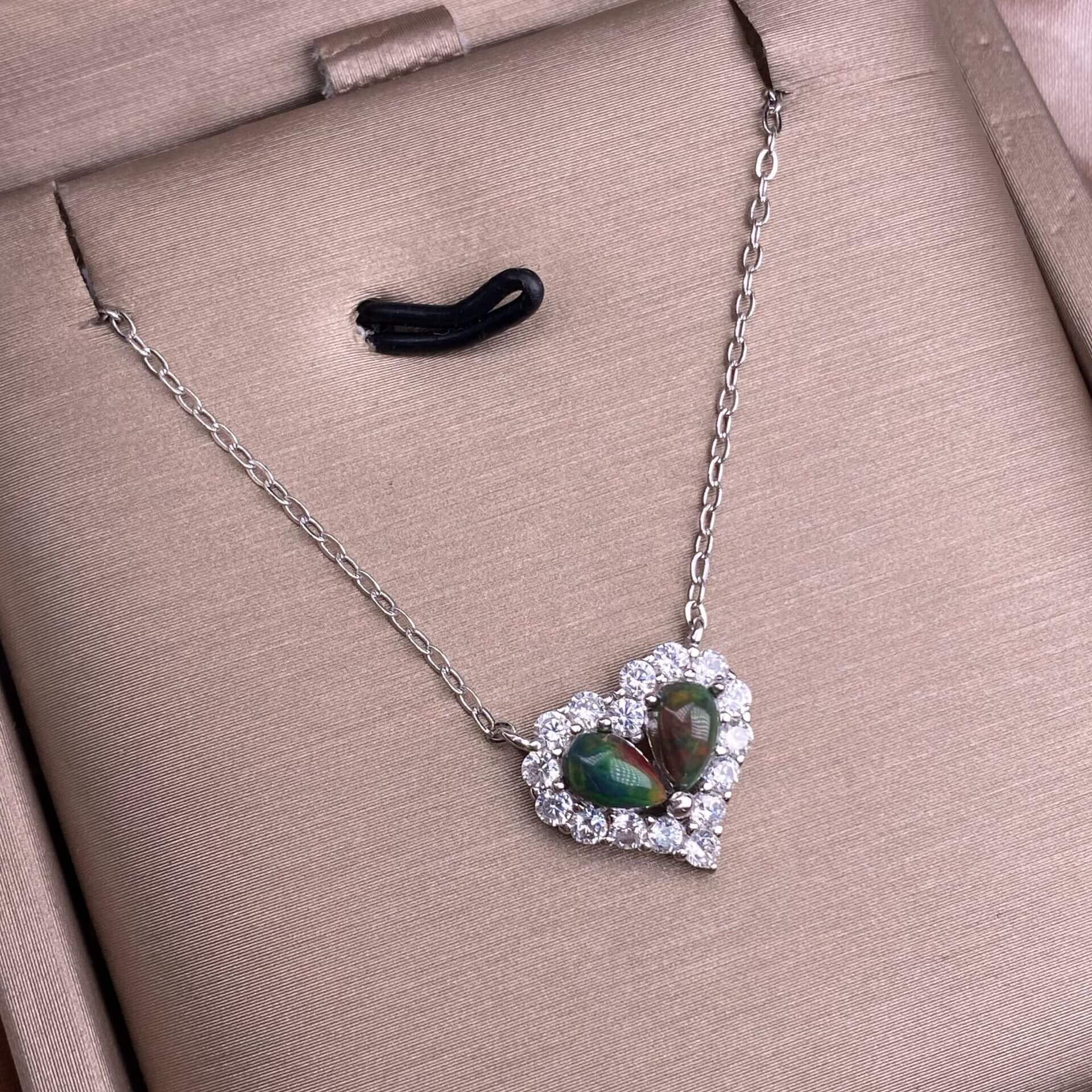 Black Opal Opal, Pink topaz, tourmaline S925 necklace, silver inlaid with full diamonds, exquisite light luxury evening wear chain, Opal collarbone chain, fashionable office lady