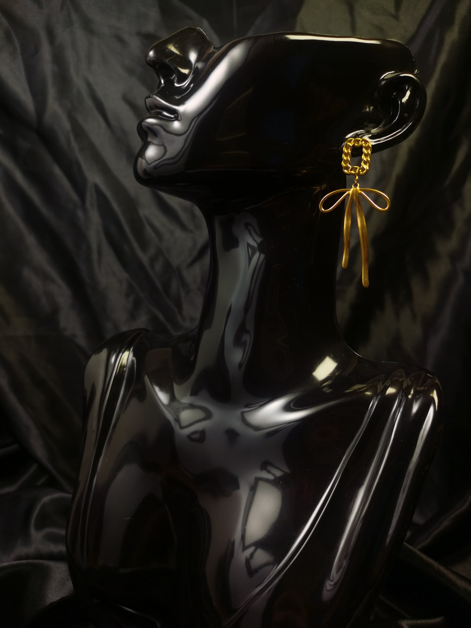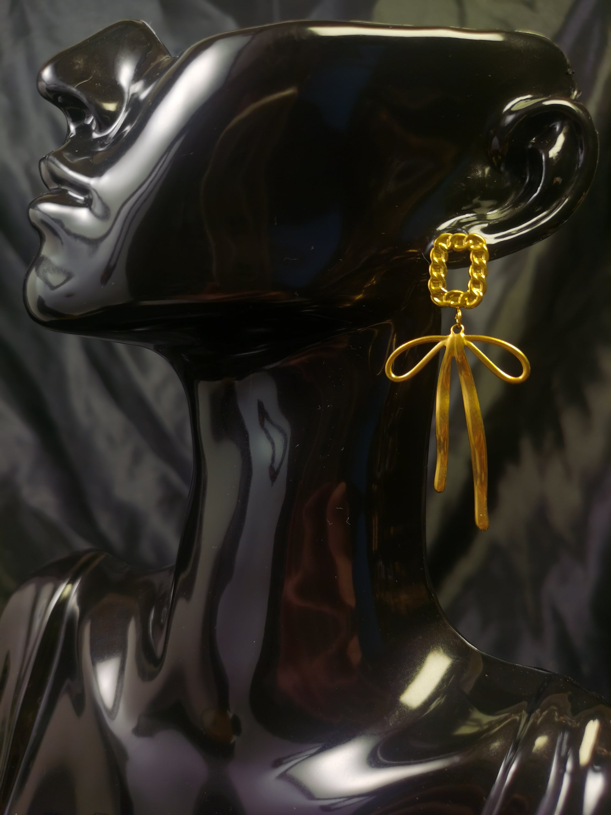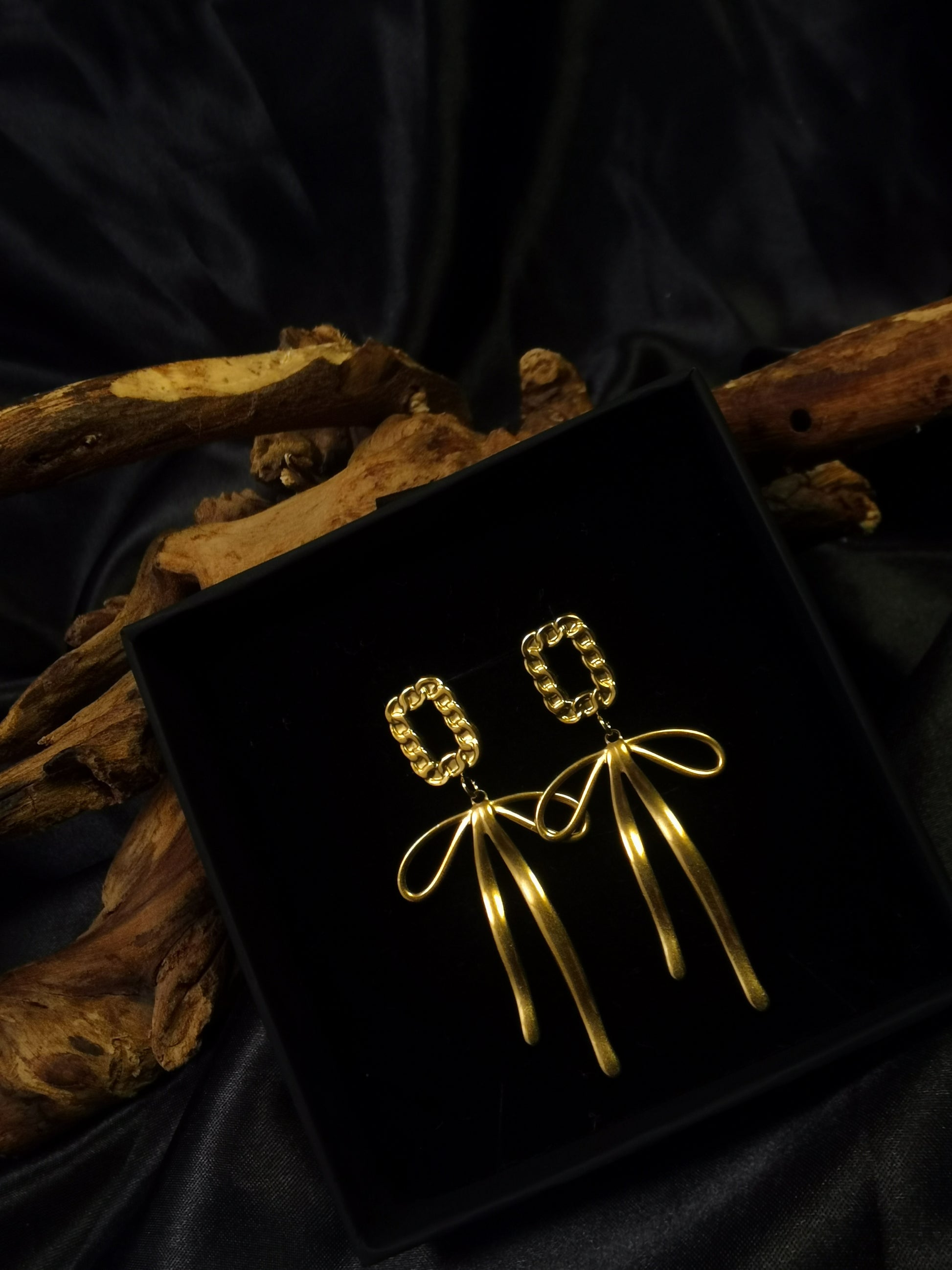 Cuban Square Earrings 18k gold-plated Titanium Steel Bow knot belt GMJE19