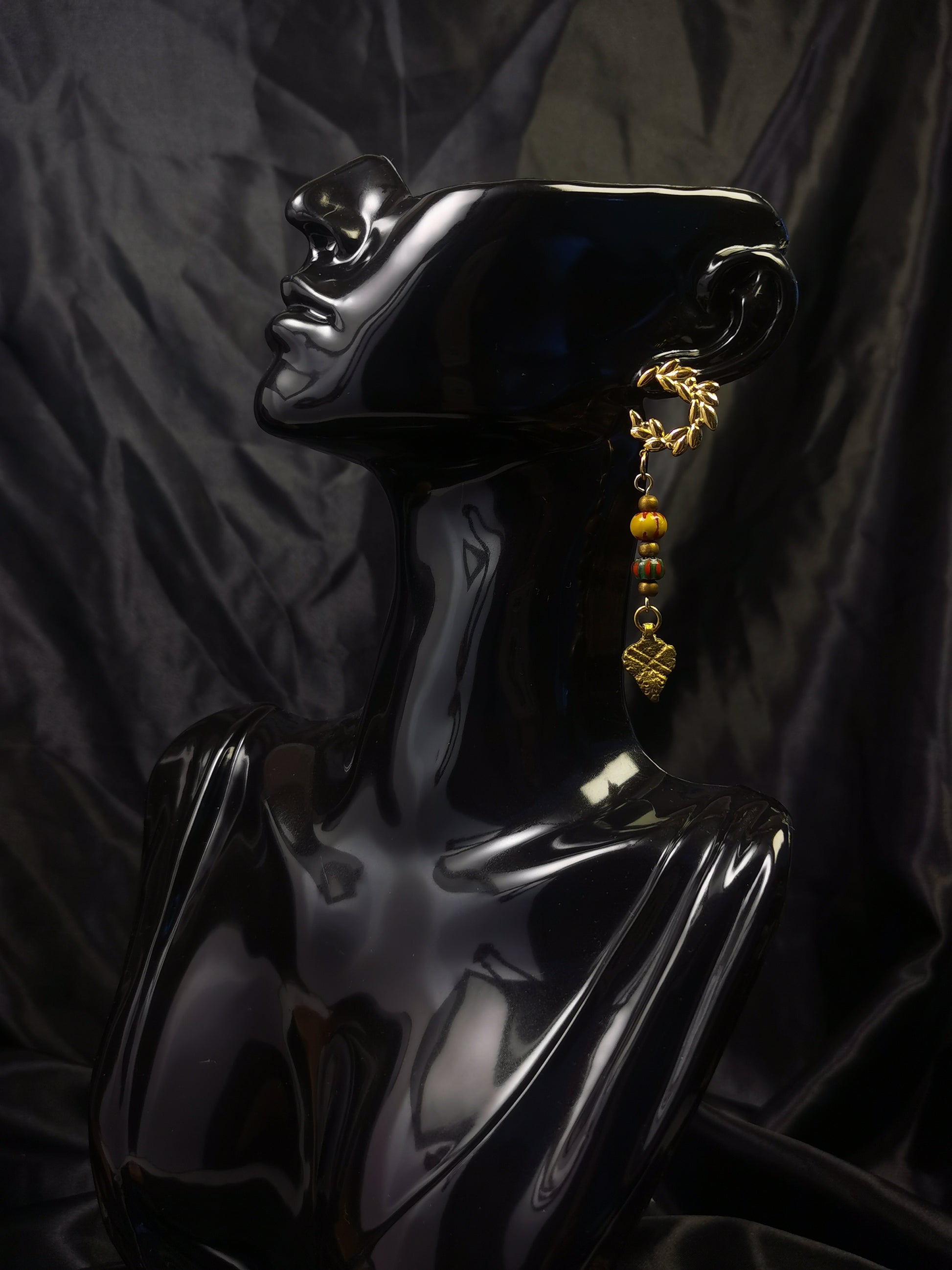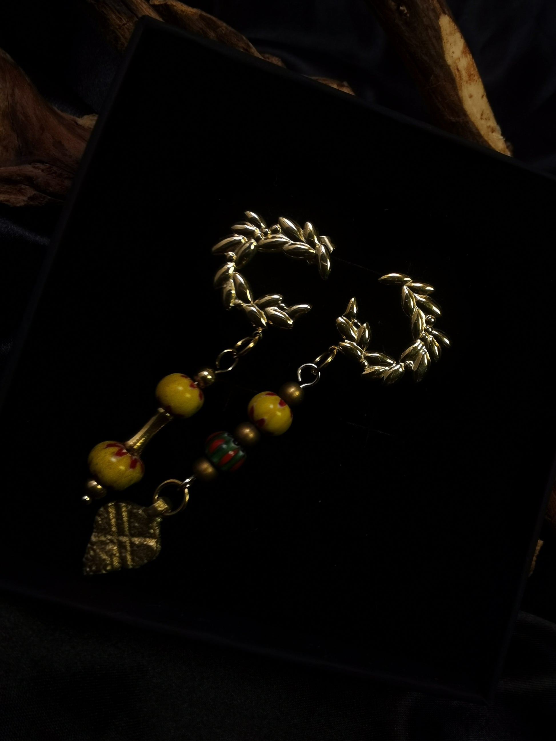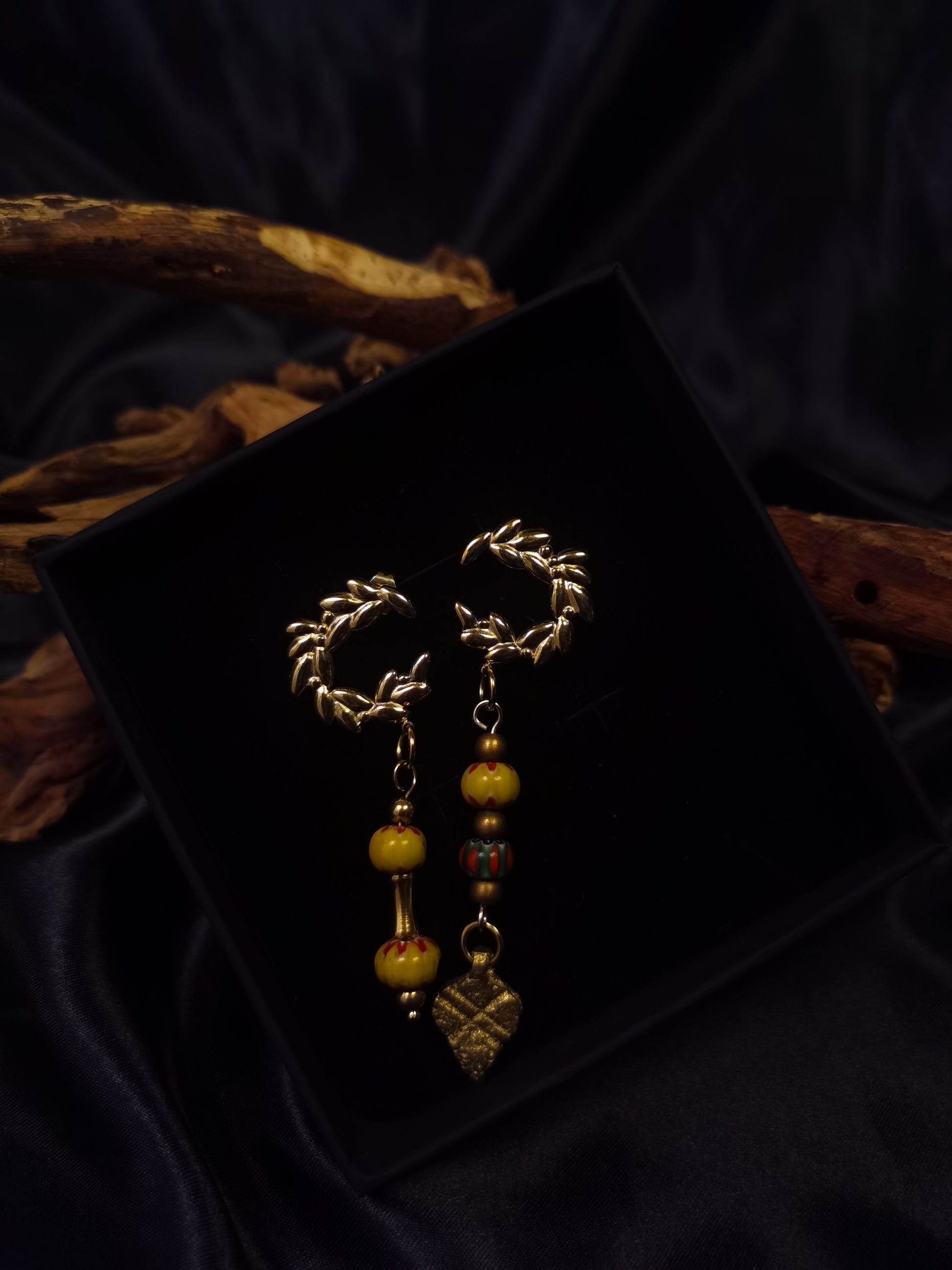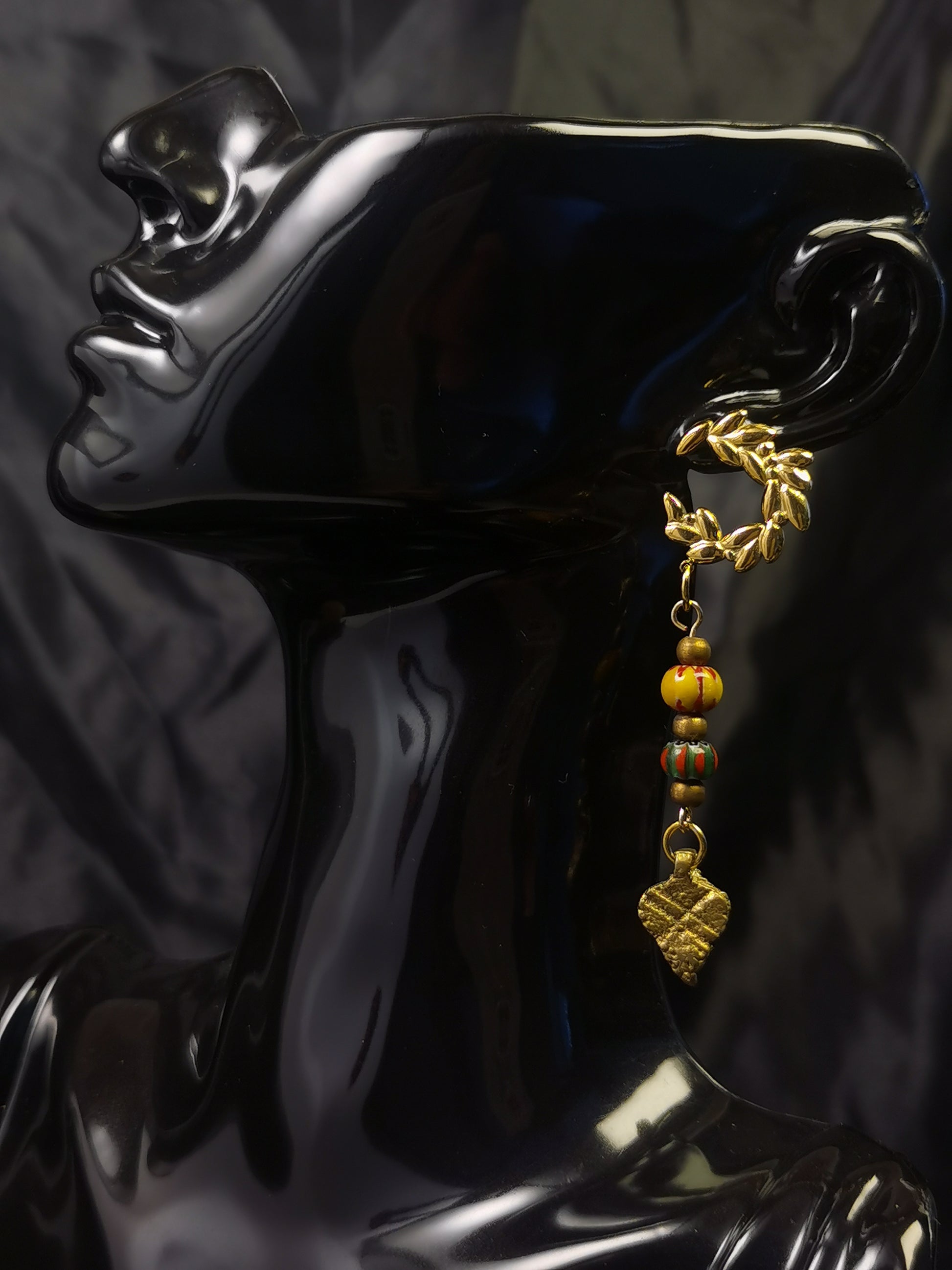 Ear of Wheat Earrings 18k gold-plated Titanium Steel Nepal stone& copper GMJE15