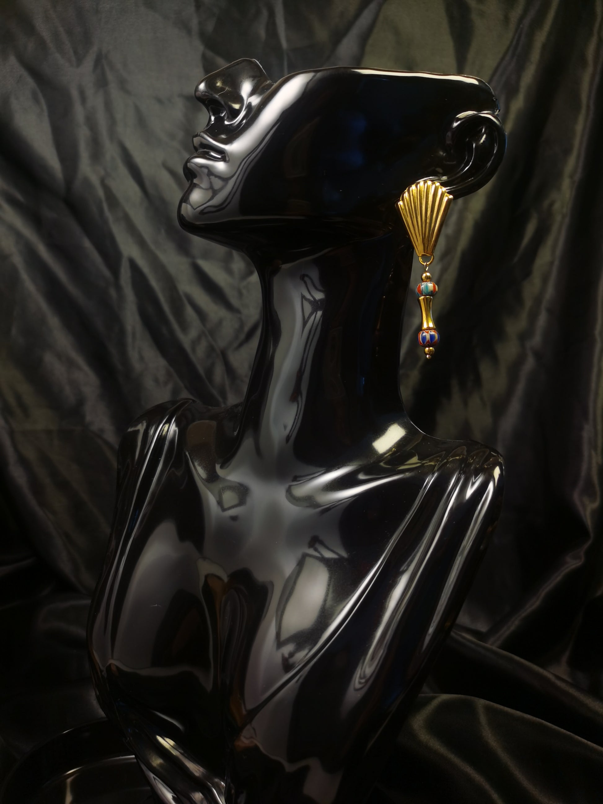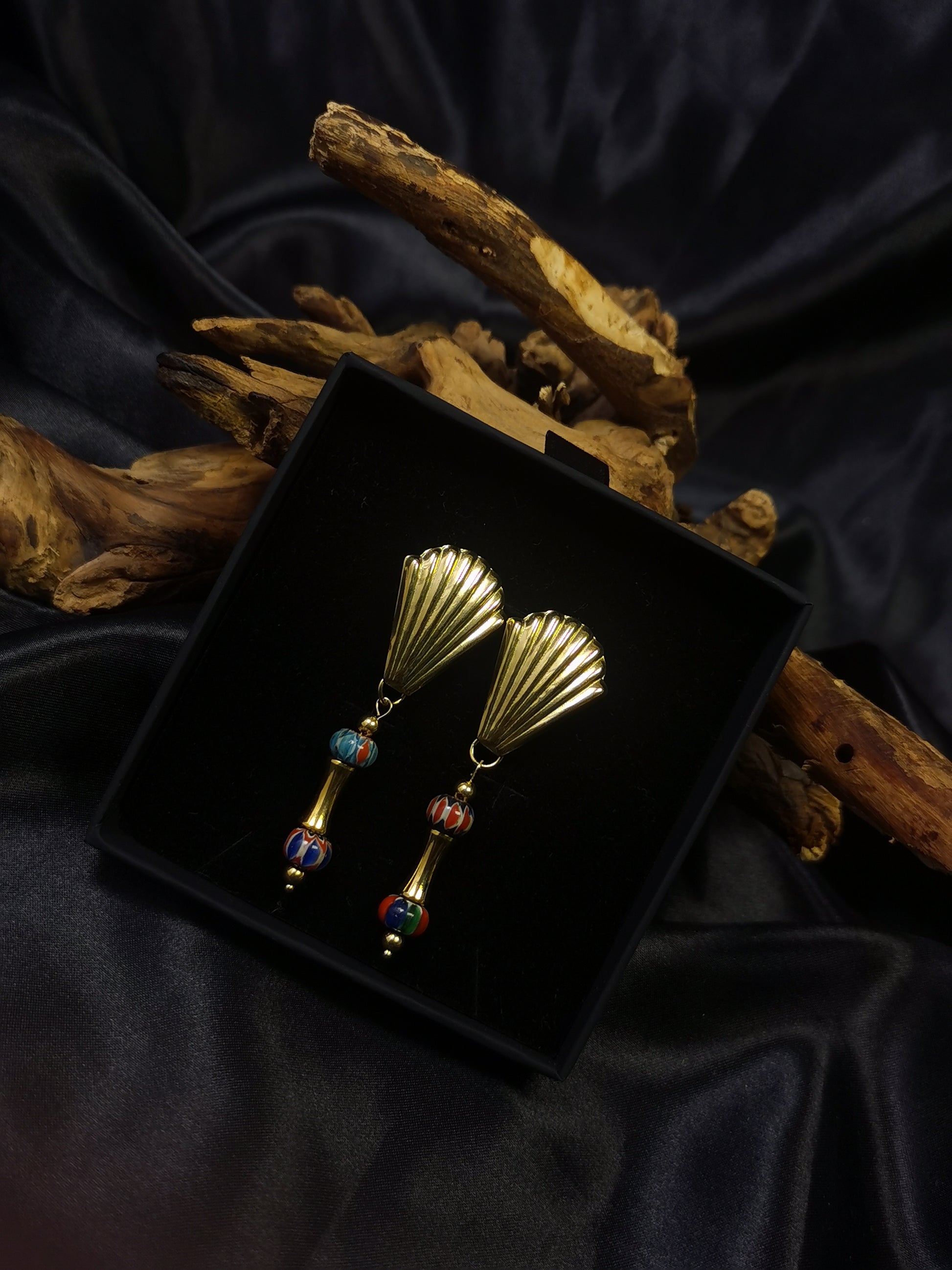Shell shaped Earrings 18k gold-plated Titanium Steel Nepal natural stone GMJE11
