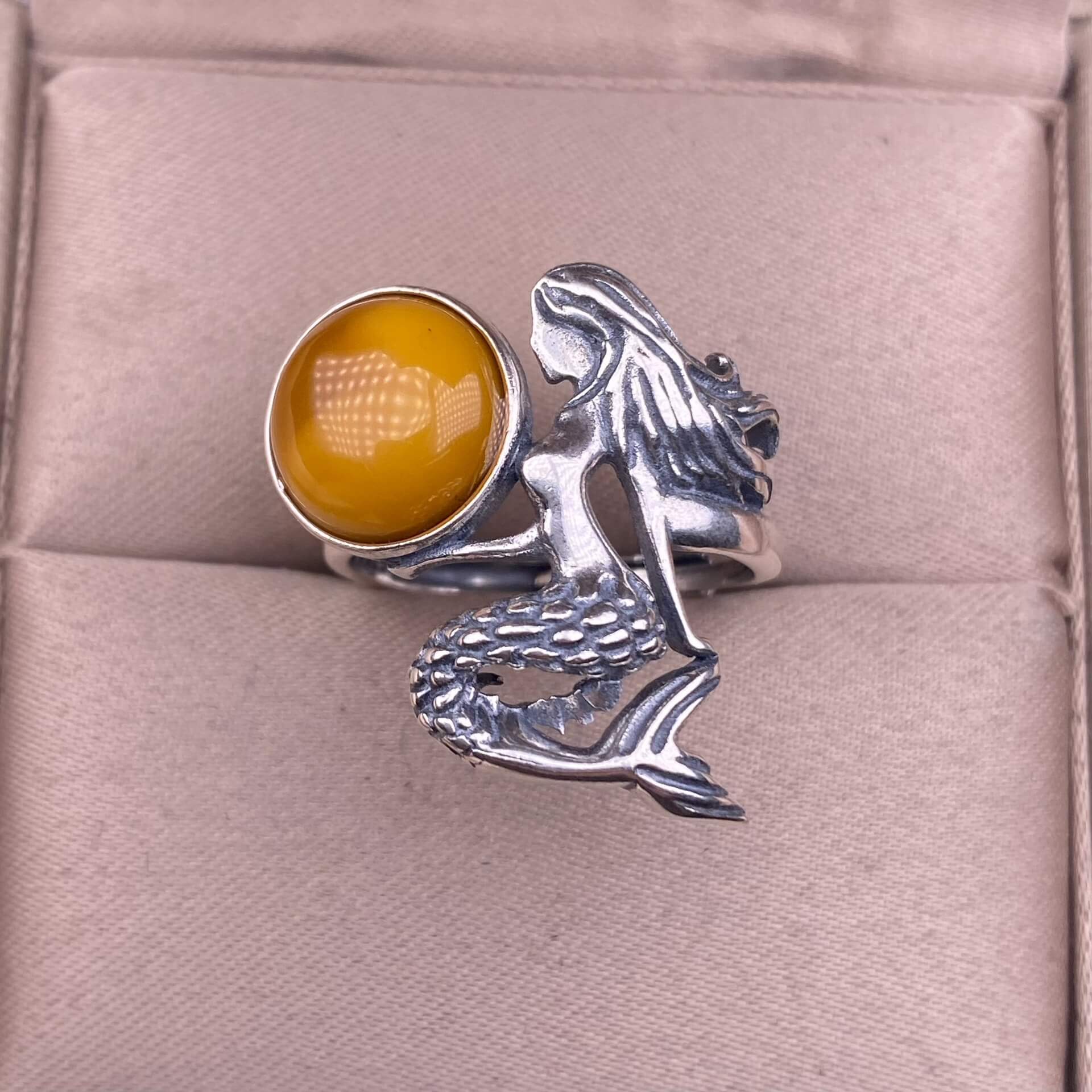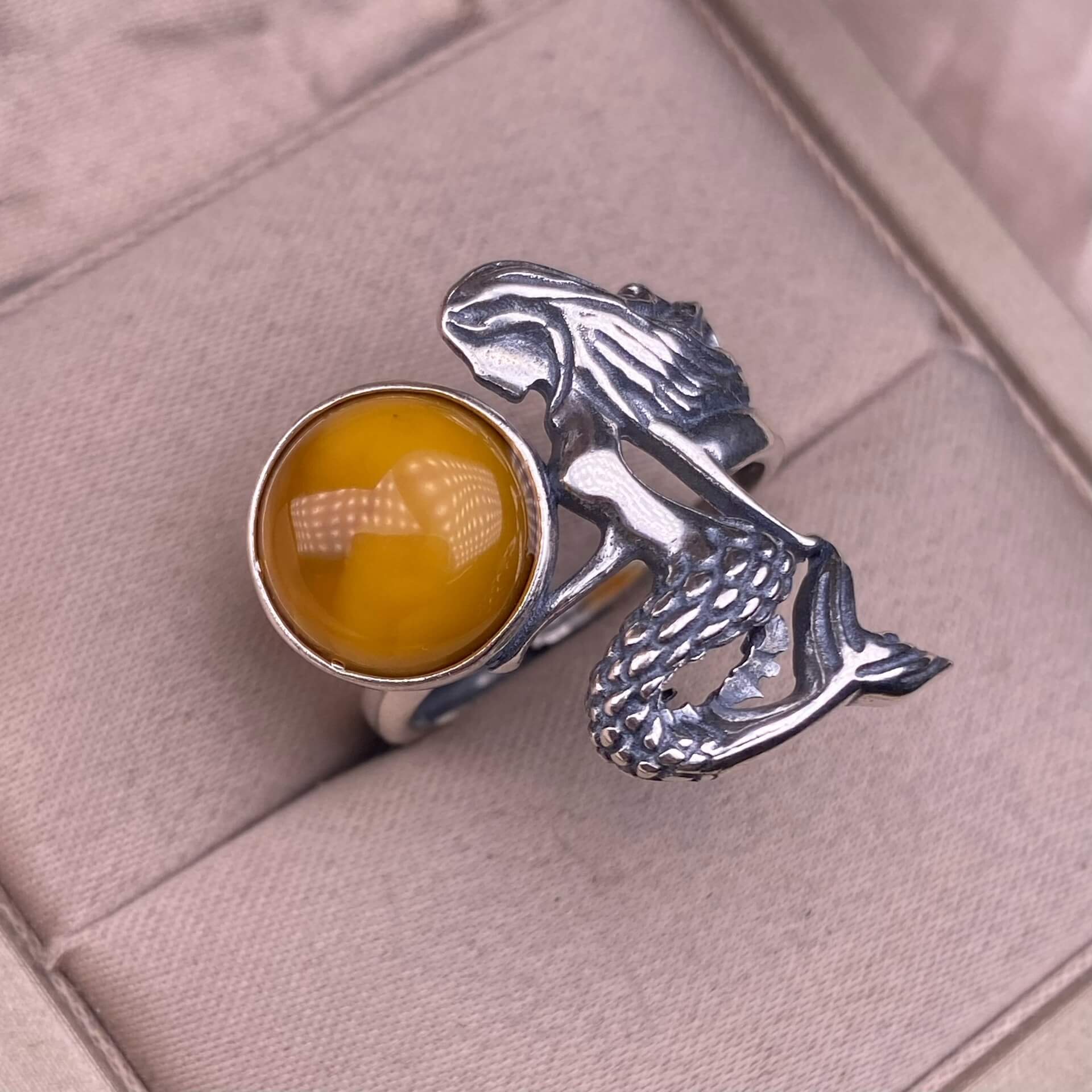 Old wax, amethyst, ghost, garnet, rose quartz golden fortune stone ring S925 in silver, mermaid shaped Silver