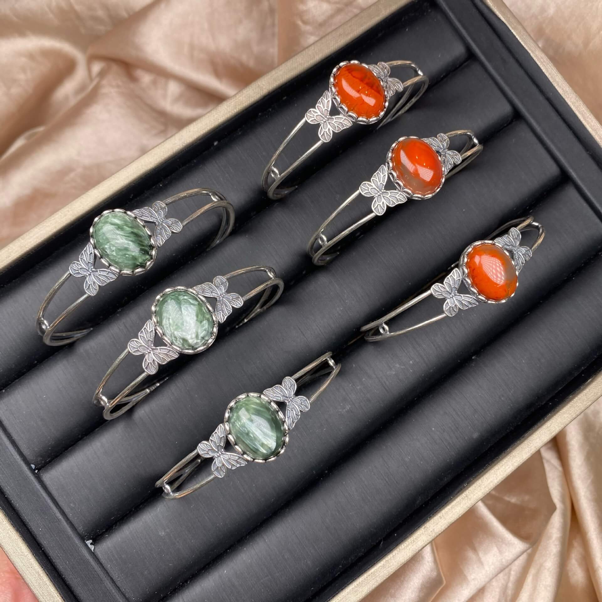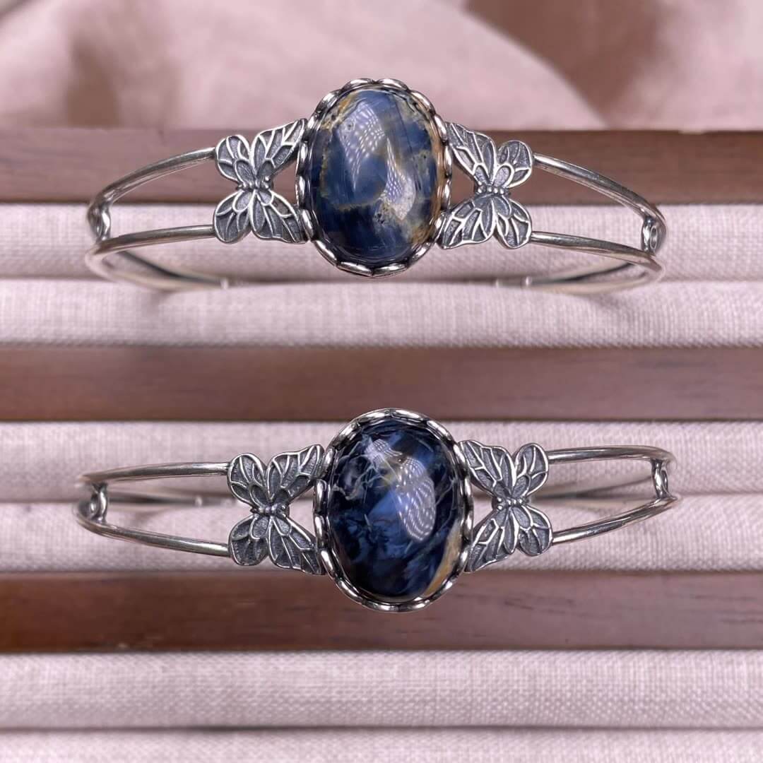 Old wax, green dragon crystal, south red, rose crystal, blue crystal, Peter stone bangle bracelet S925, silver inlaid, retro open bracelet