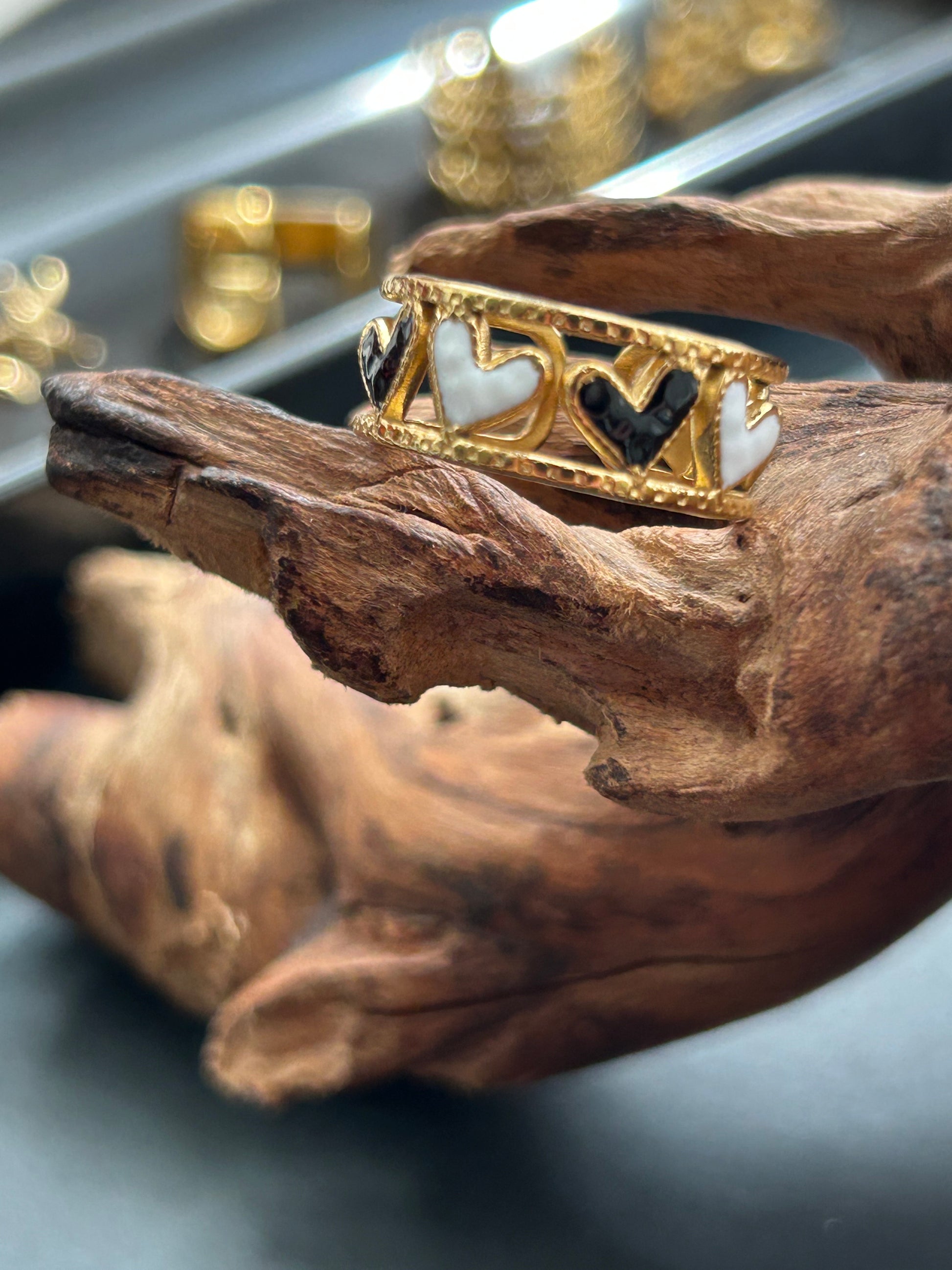 Black and White Hearts Ring 18k gold-plated Titanium Steel GMJR3