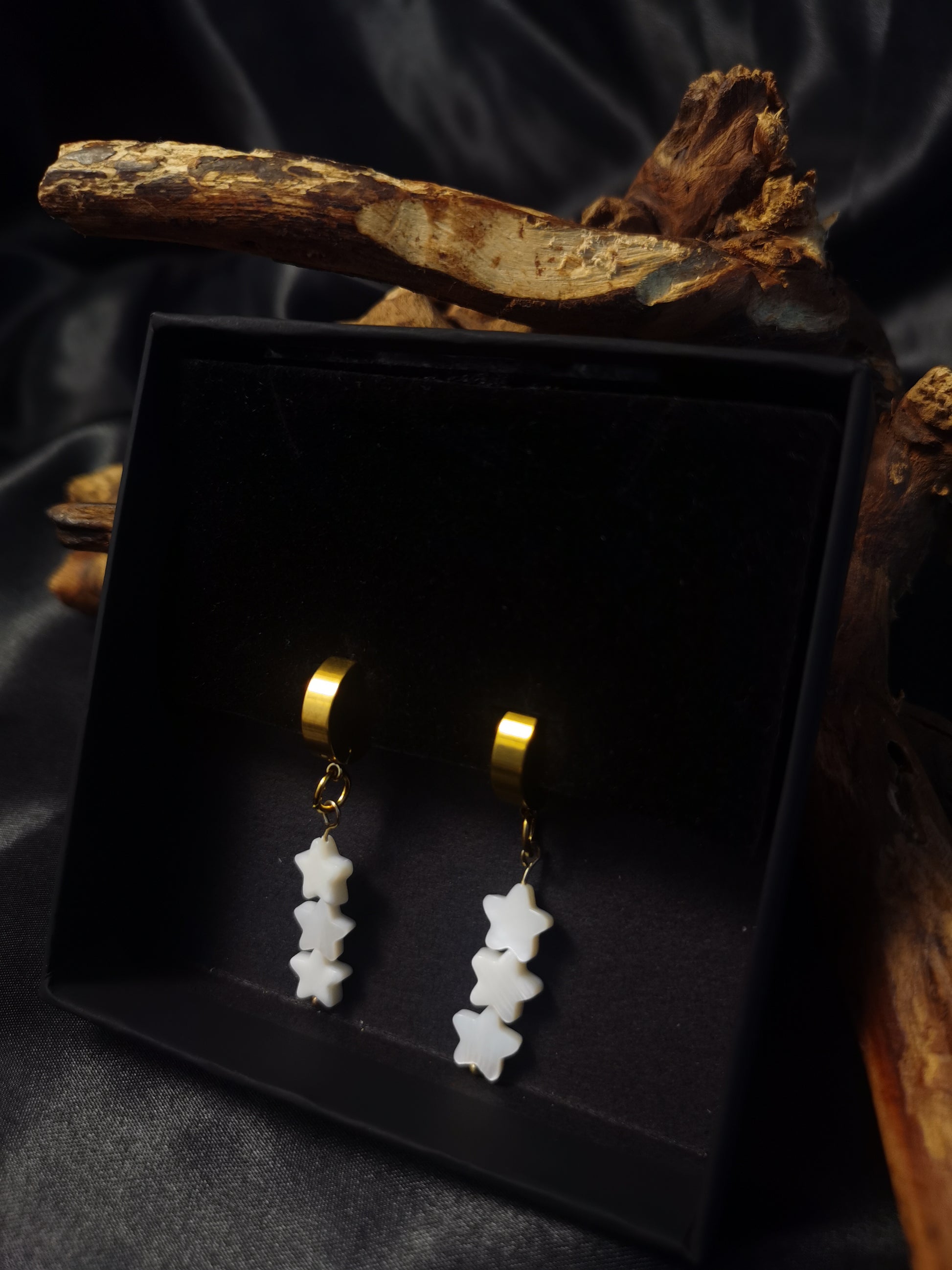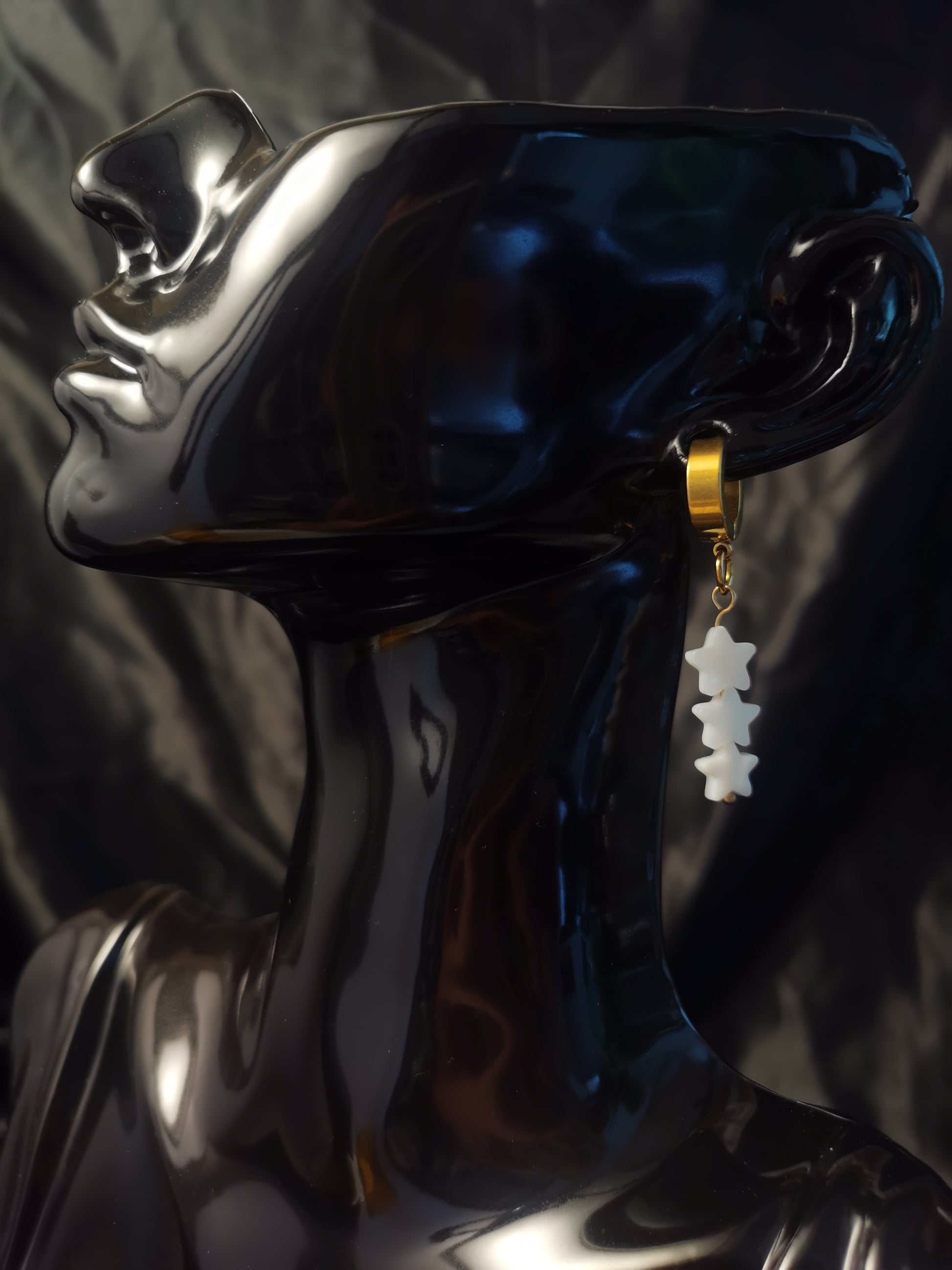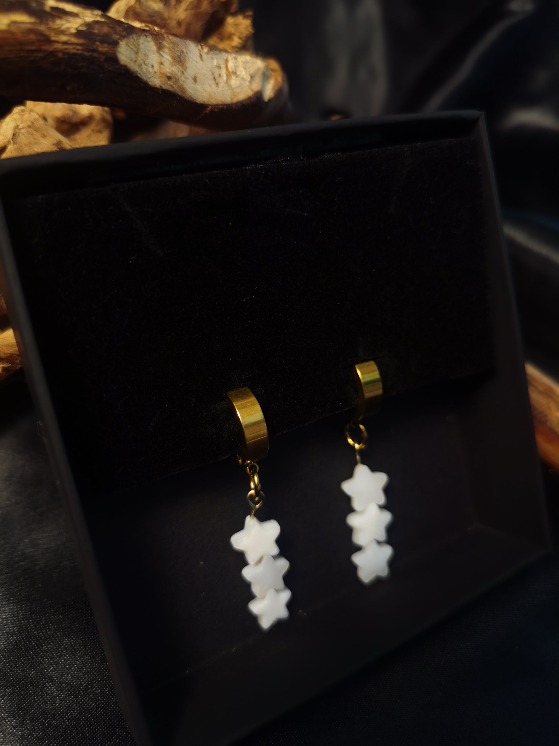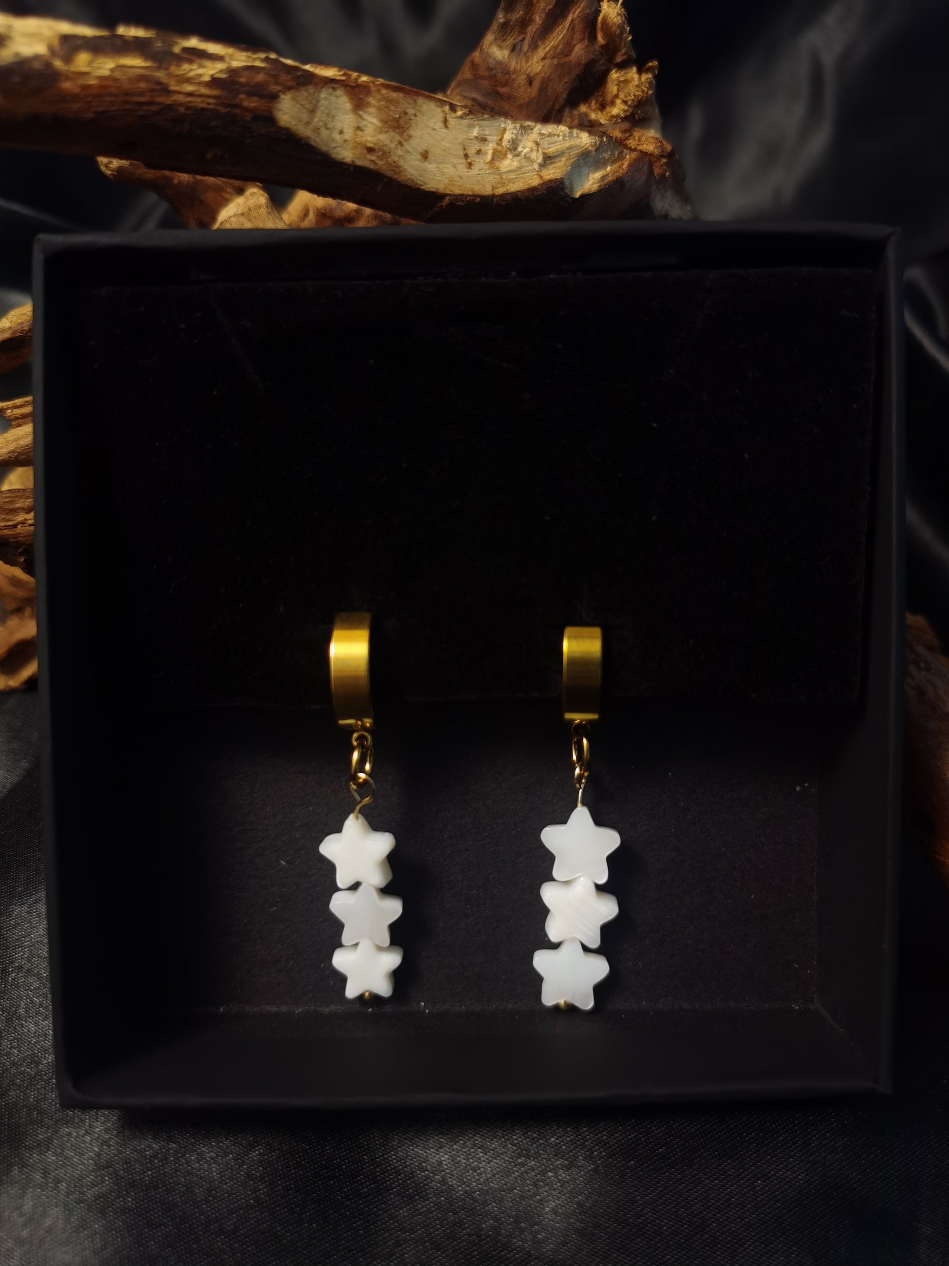 Huggie 3 Shell Stars Earrings 18k gold-plated Titanium Steel GMJE37