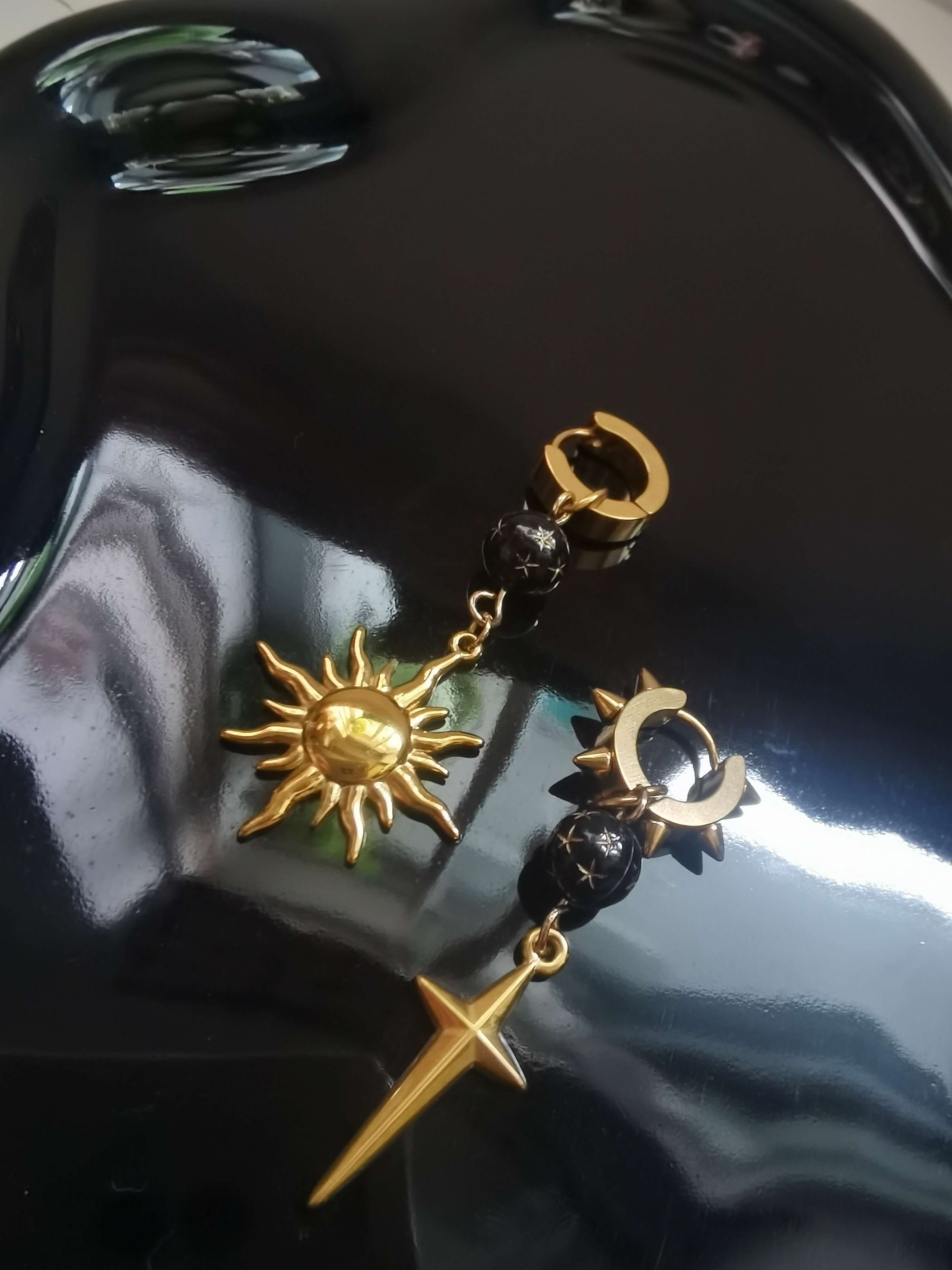 Huggies Earrings 18k gold-plated Titanium Steel Bibleinspo Cross and light GMJE56