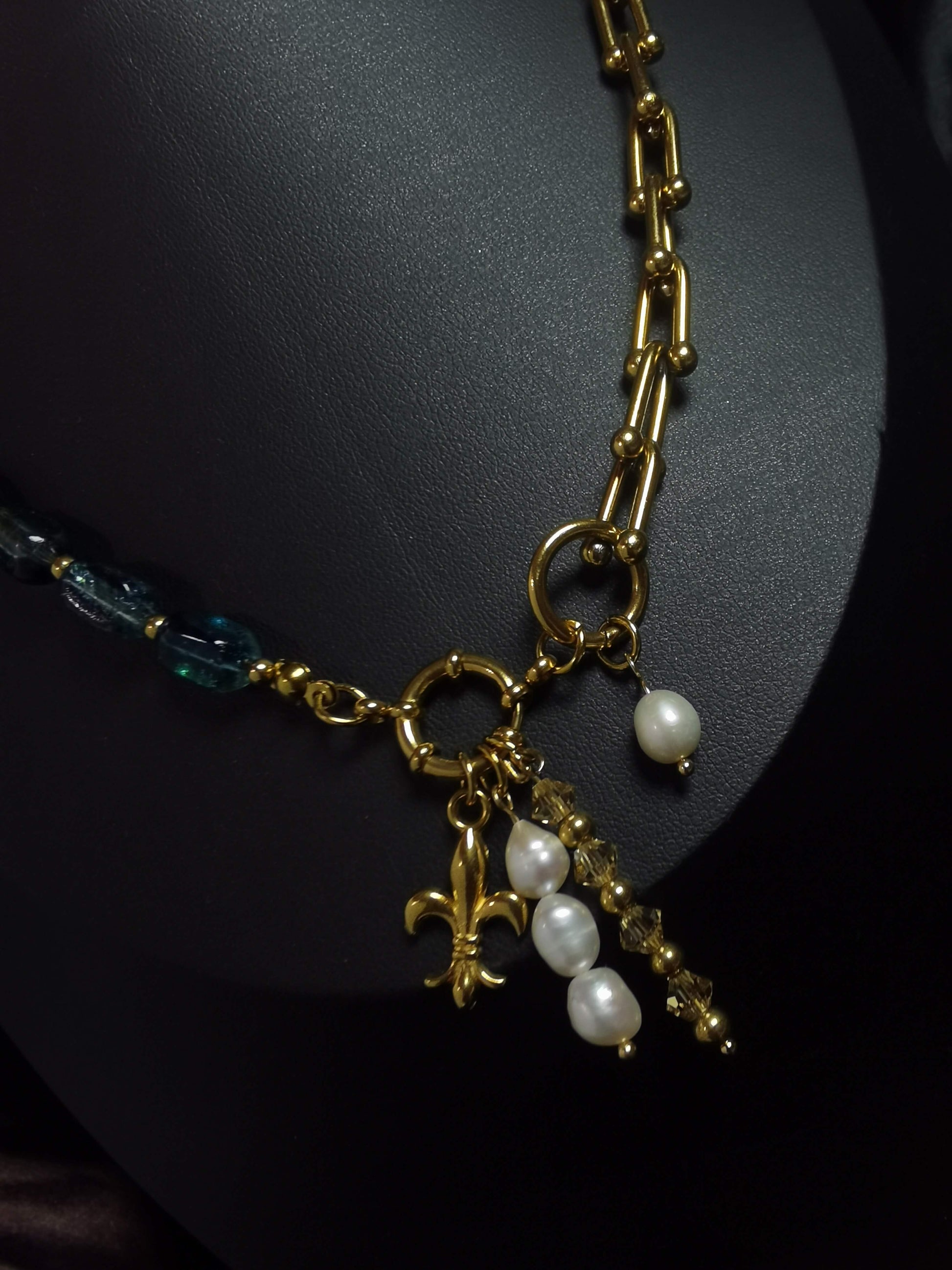Joint Necklace 18k gold-plated Titanium Steel Glass&Horseshoe chain Trendy Jewelry 2025 GMJN7