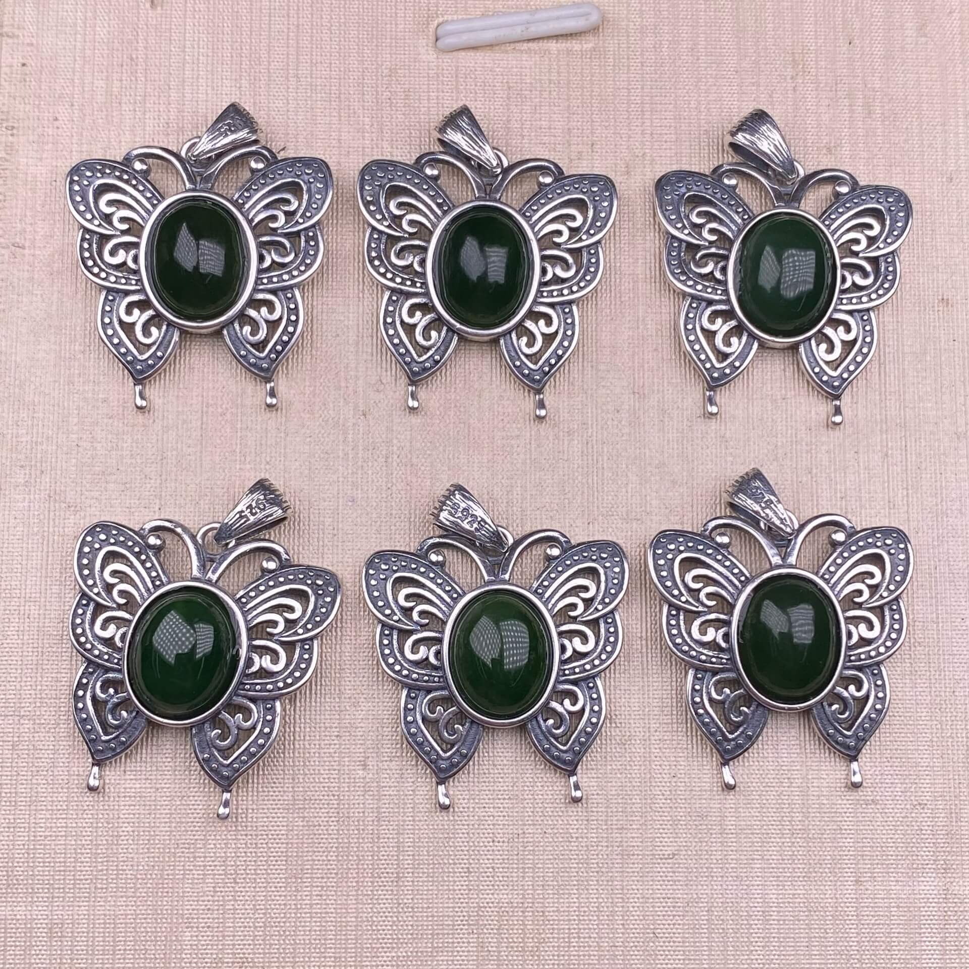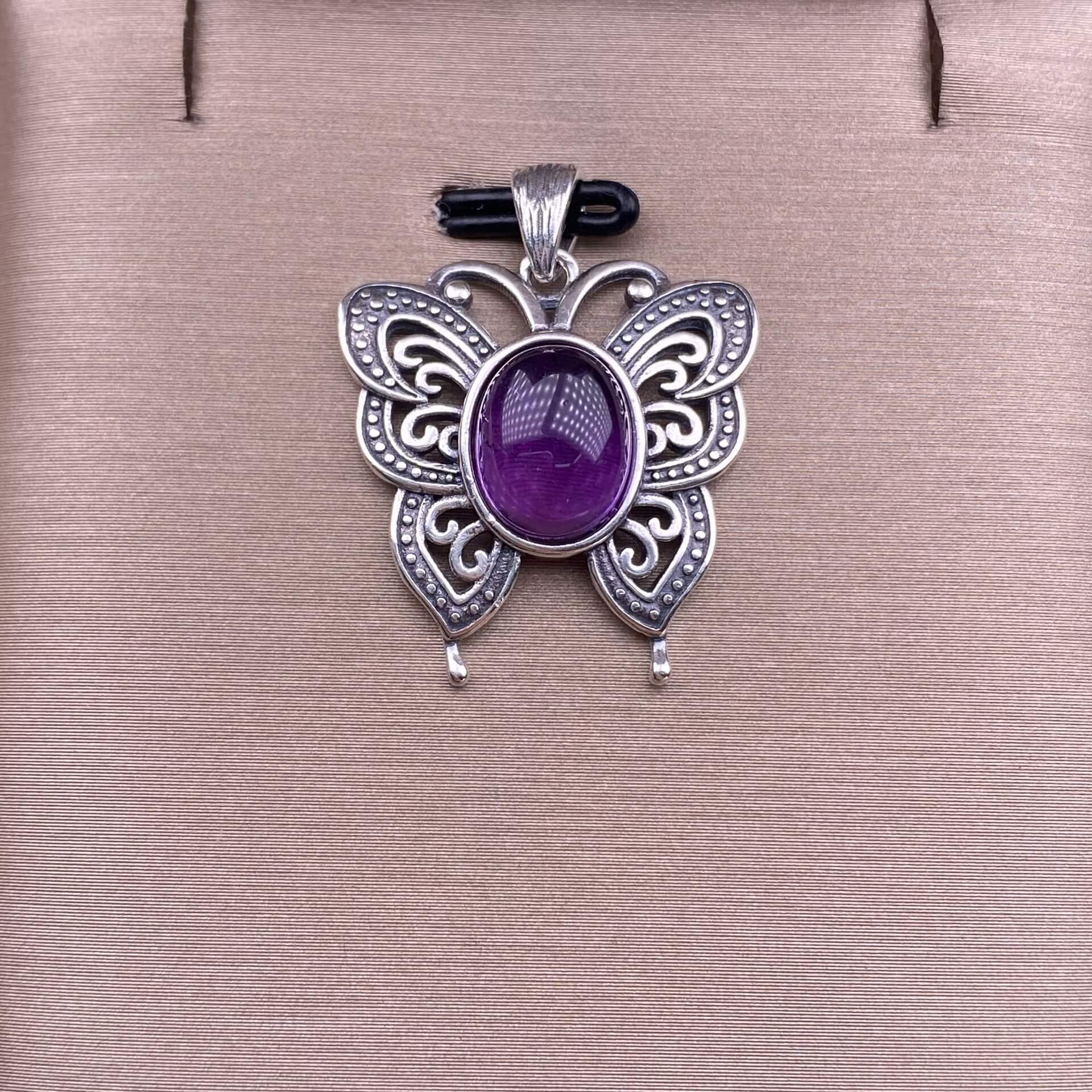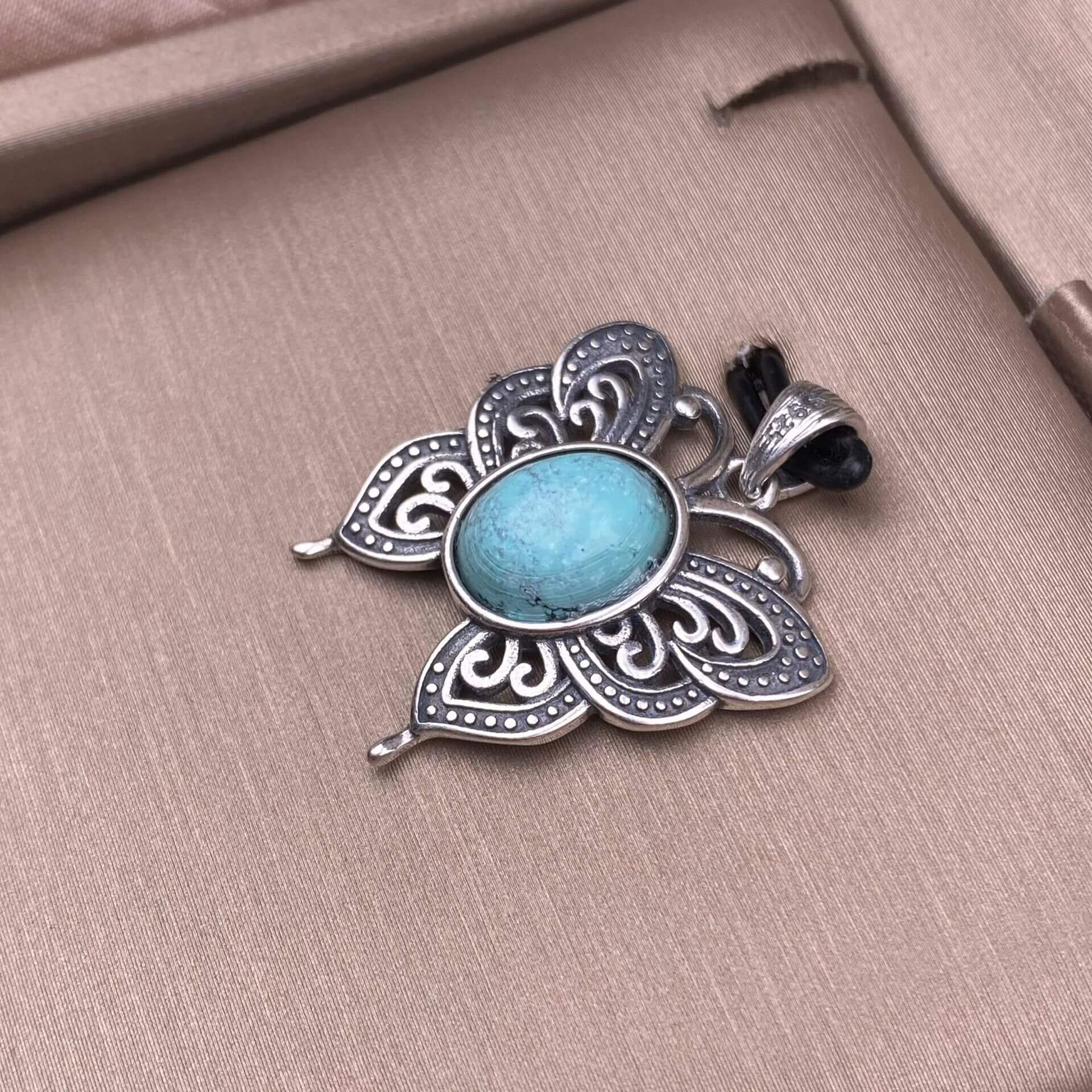 Lalima sea Pattern Stone Rose quartz, blue moonstone, aquamarine, old wax, flower amber, amethyst, turquoise, Hetian jade, grape stone pendant S925 silver inlaid retro butterfly necklace pendant