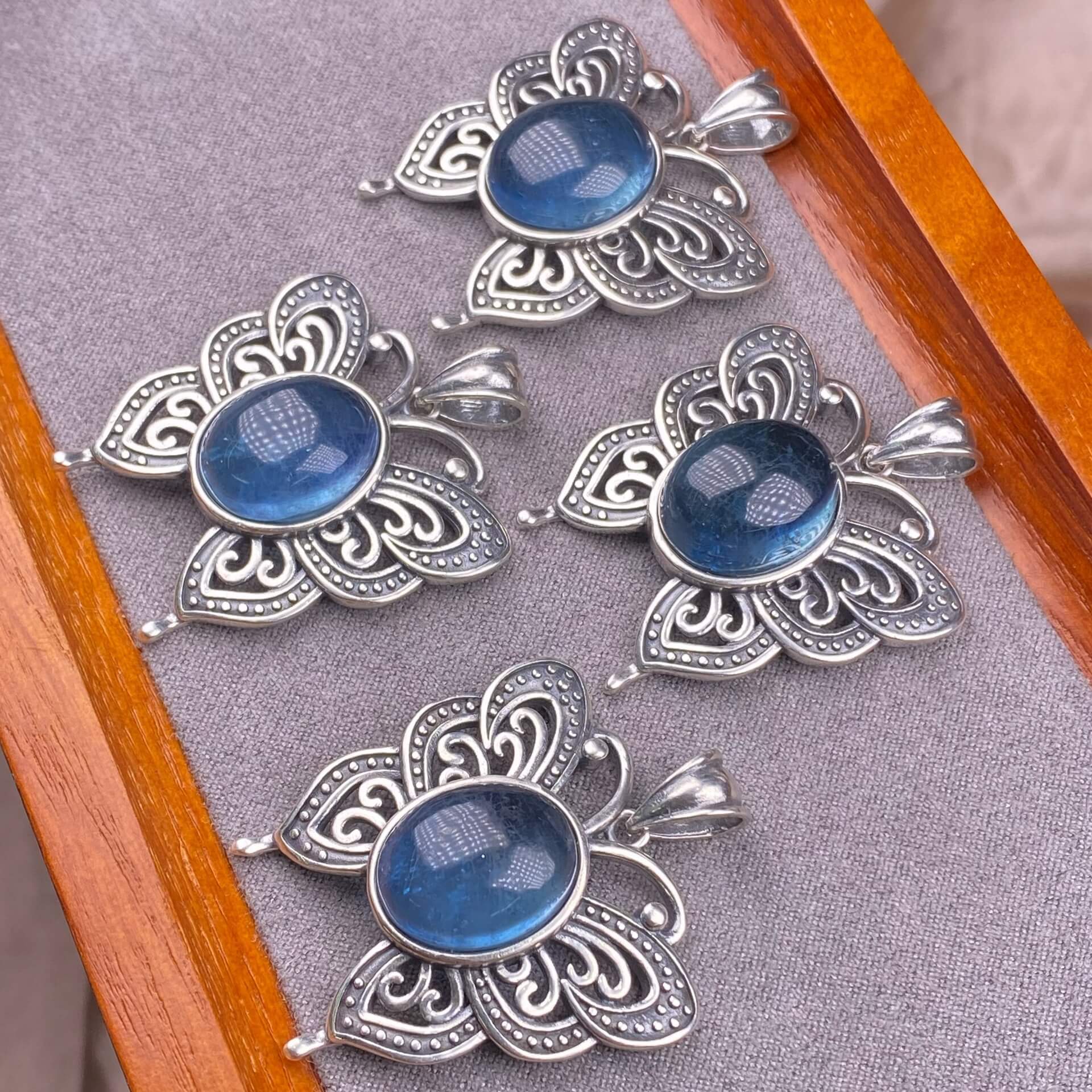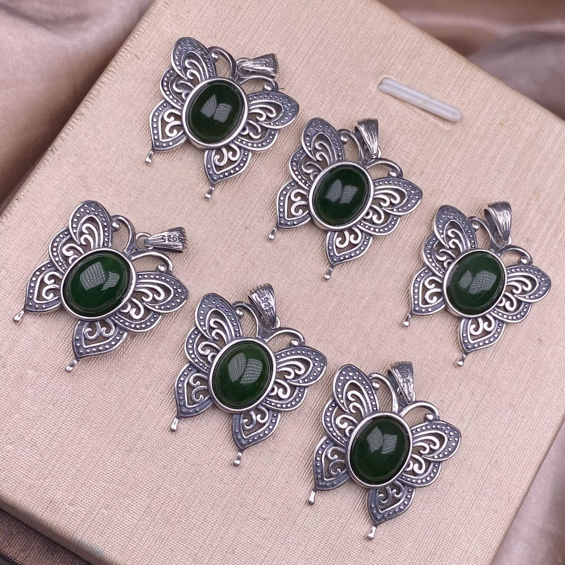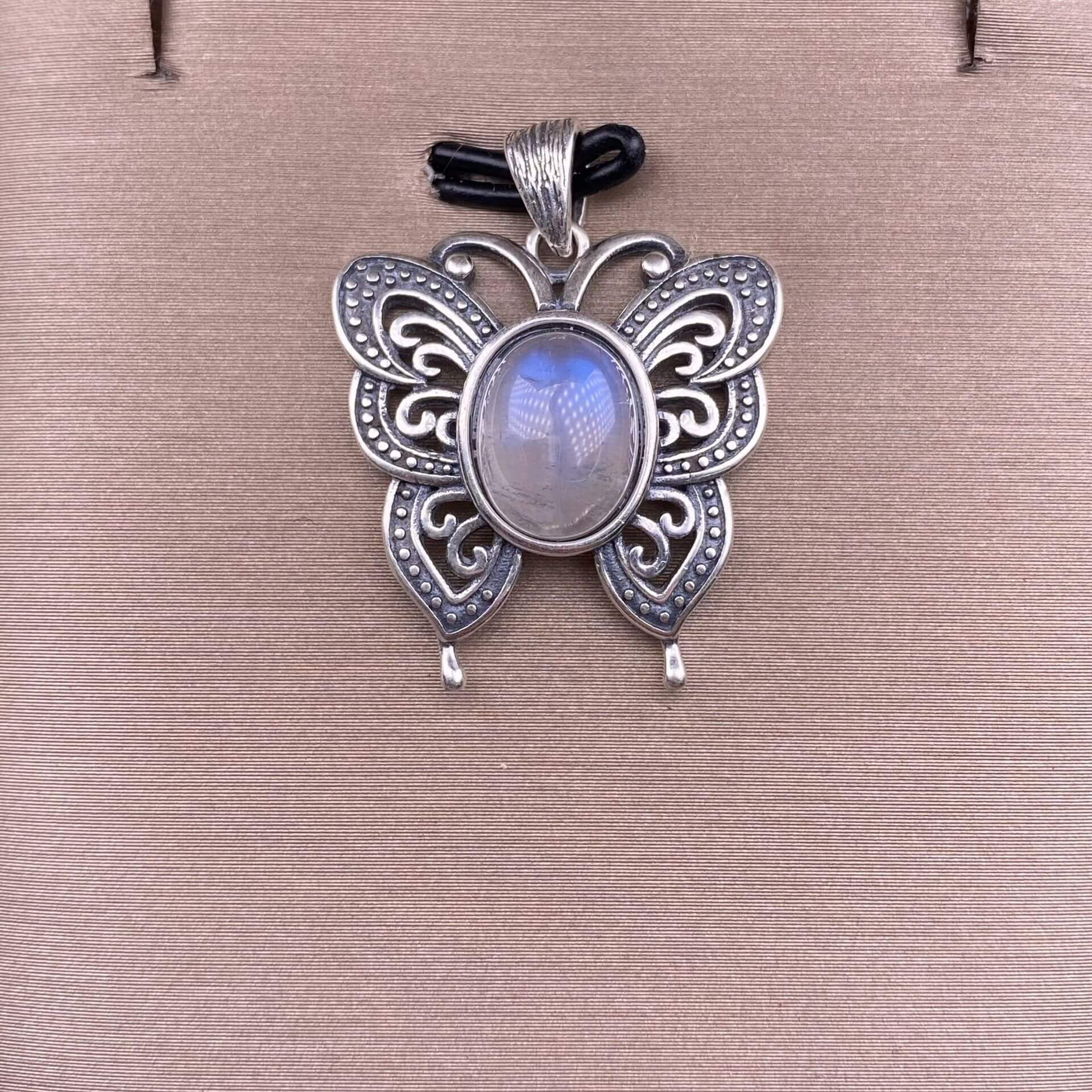 Lalima sea Pattern Stone Rose quartz, blue moonstone, aquamarine, old wax, flower amber, amethyst, turquoise, Hetian jade, grape stone pendant S925 silver inlaid retro butterfly necklace pendant