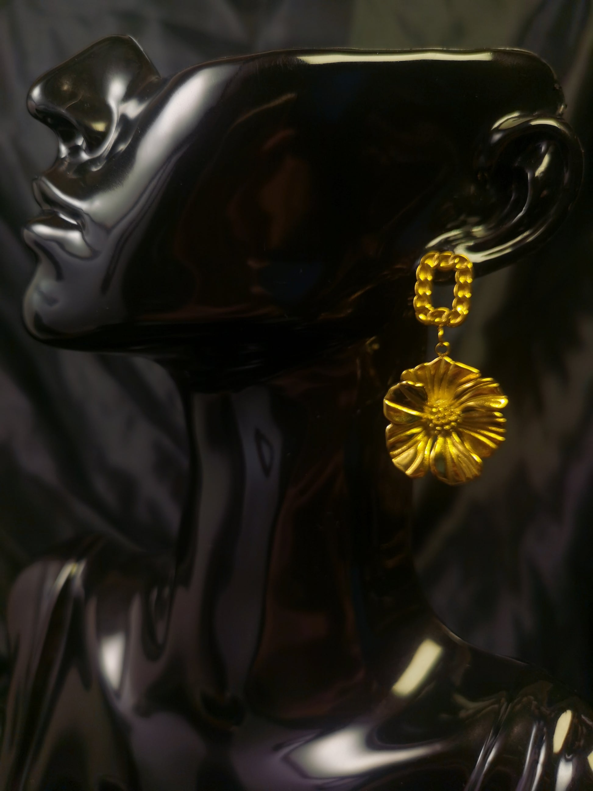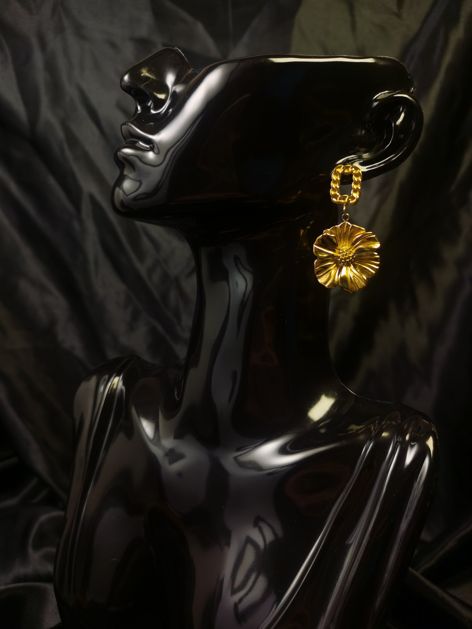 Cuban Square Earrings 18k gold-plated Titanium Steel 3D Flower GMJE21