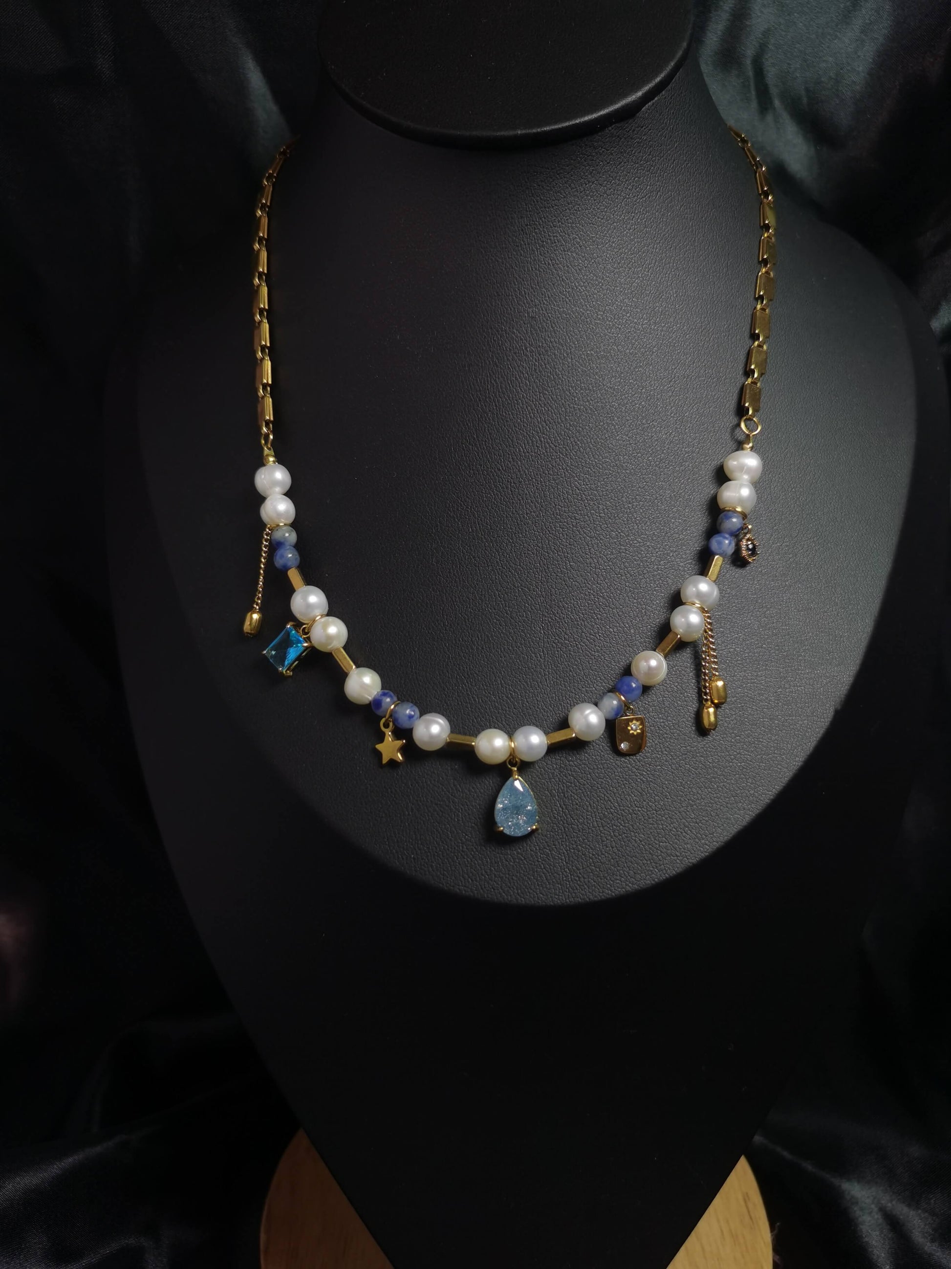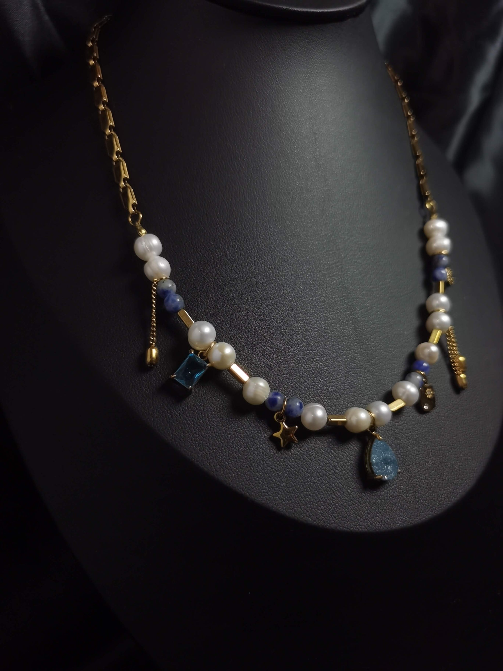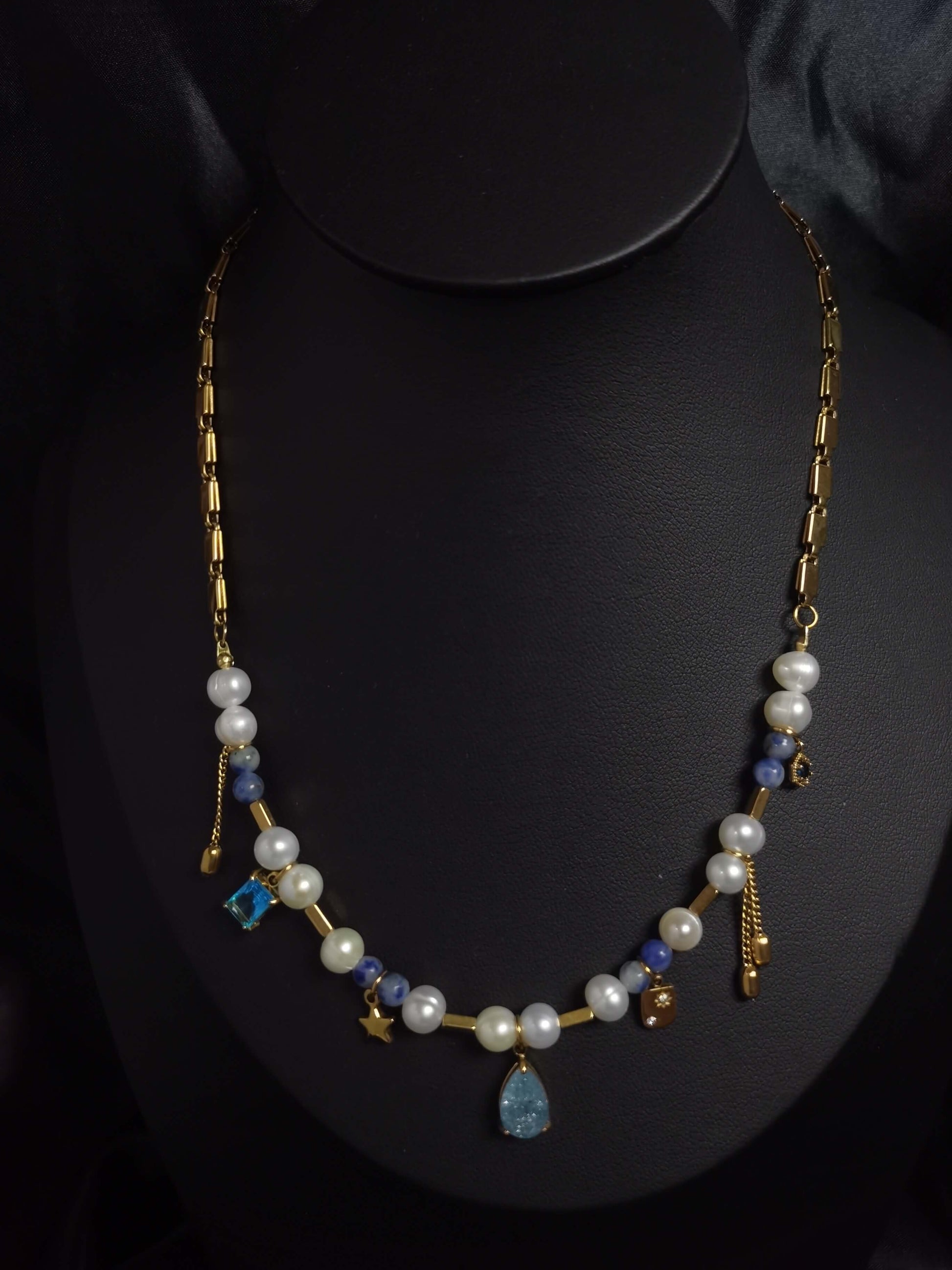 Material: Glass,Zircon,Freshwater Pearl,Titanium Steel, 18k gold plated.