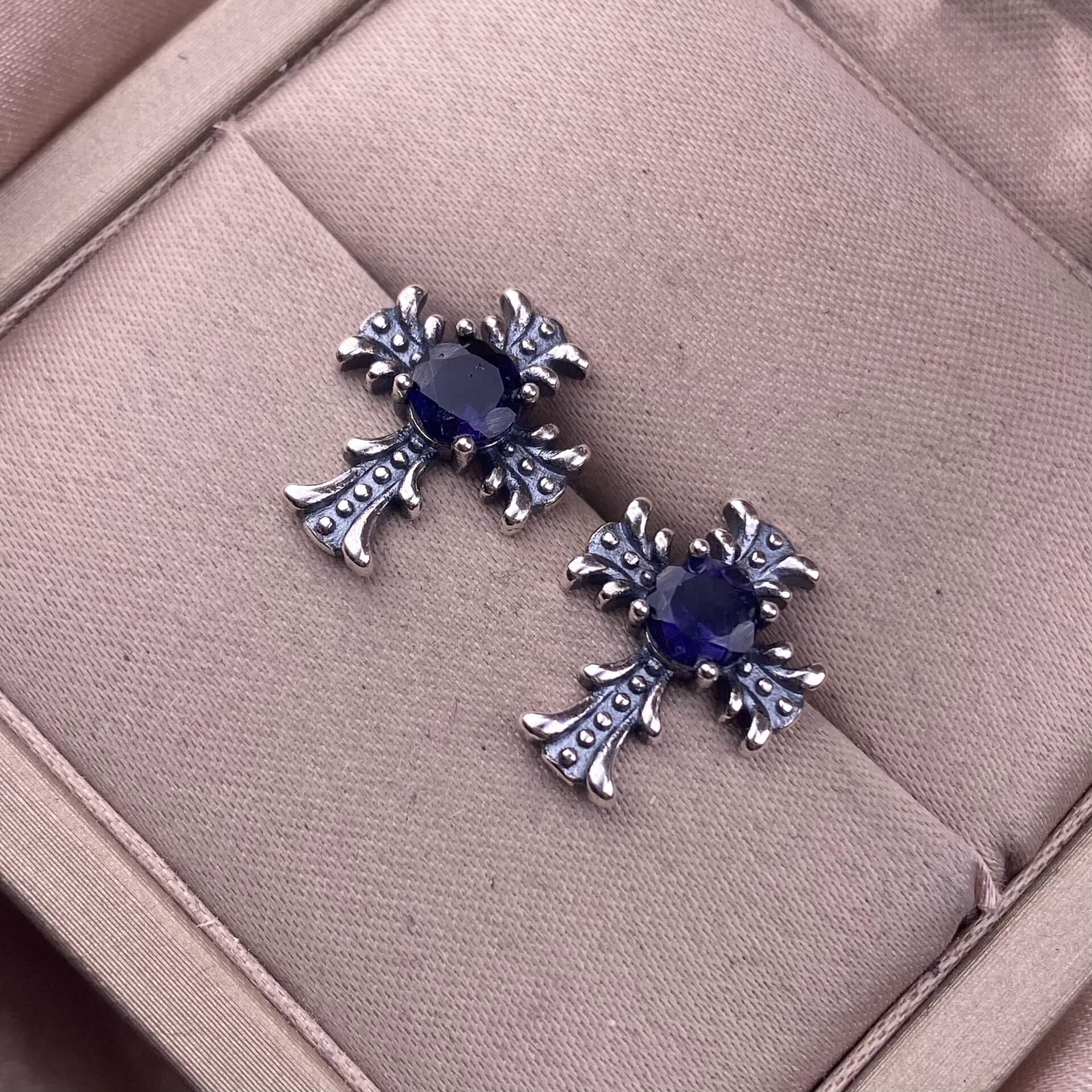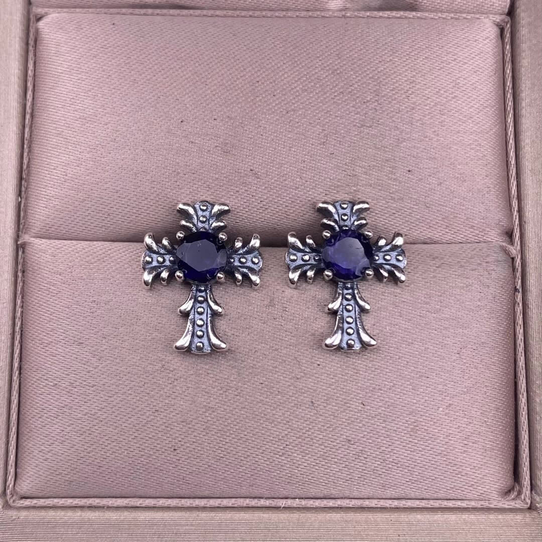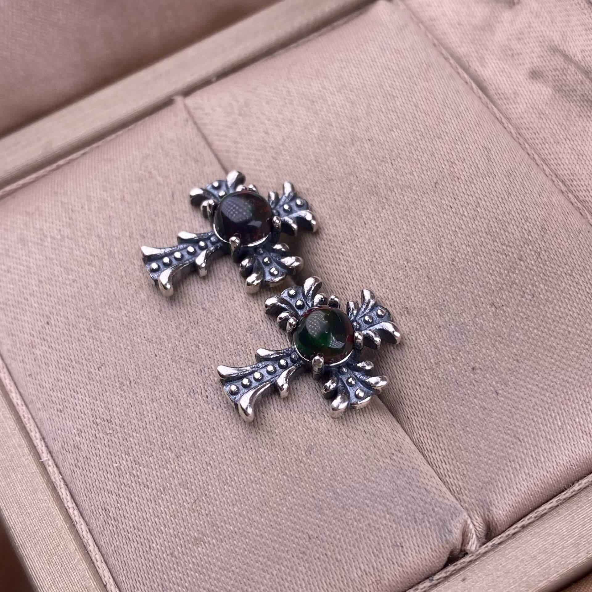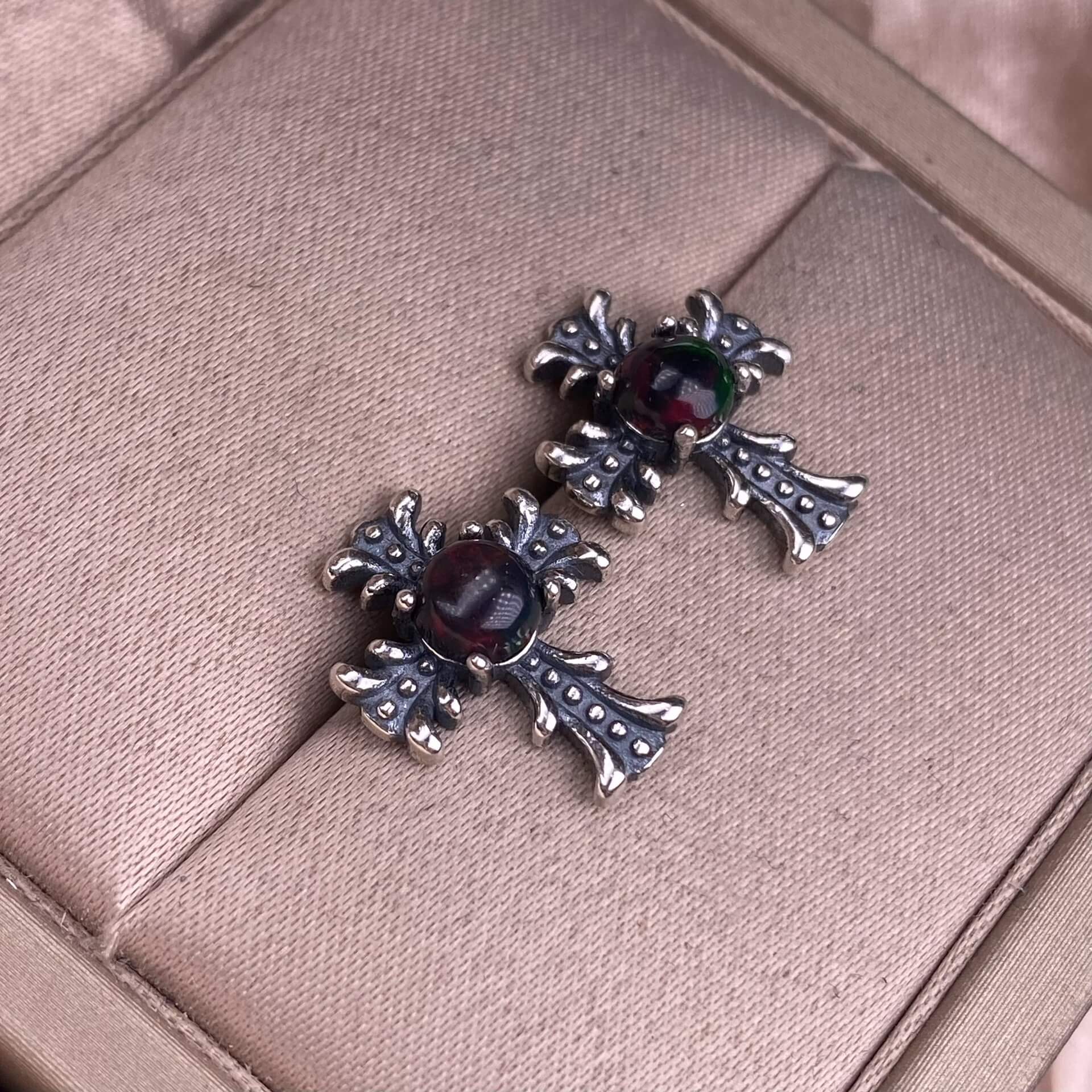 Citrine, peridot, garnet, south red, pink topaz, opal, cordierite, black opal, sea pattern stone, turquoise cross earrings S925