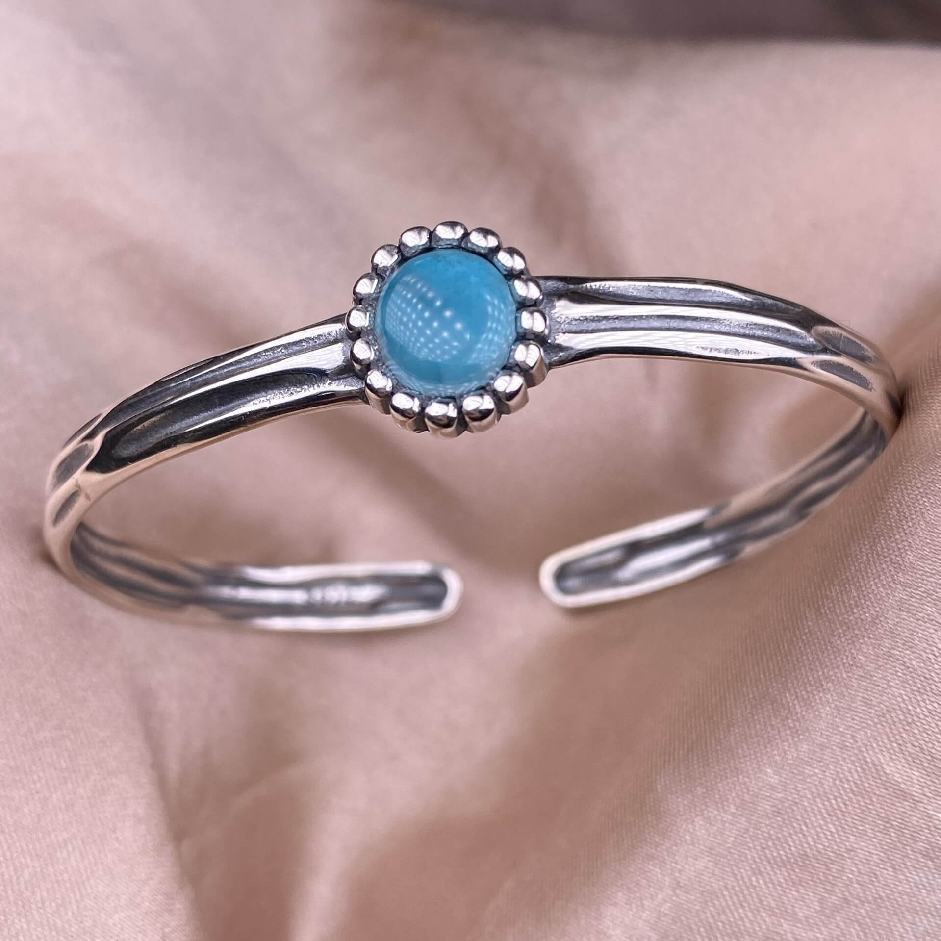 Nan Hong, Golden luck stone turquoise, Purple Dragon Crystal bangle bracelet S925, silver inlaid, retro open bracelet