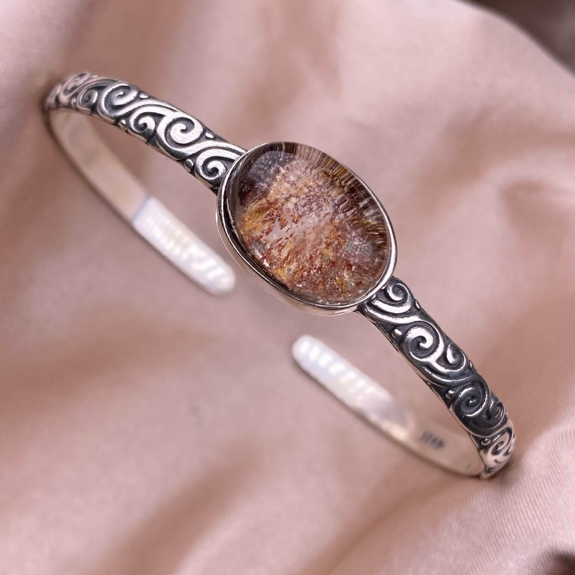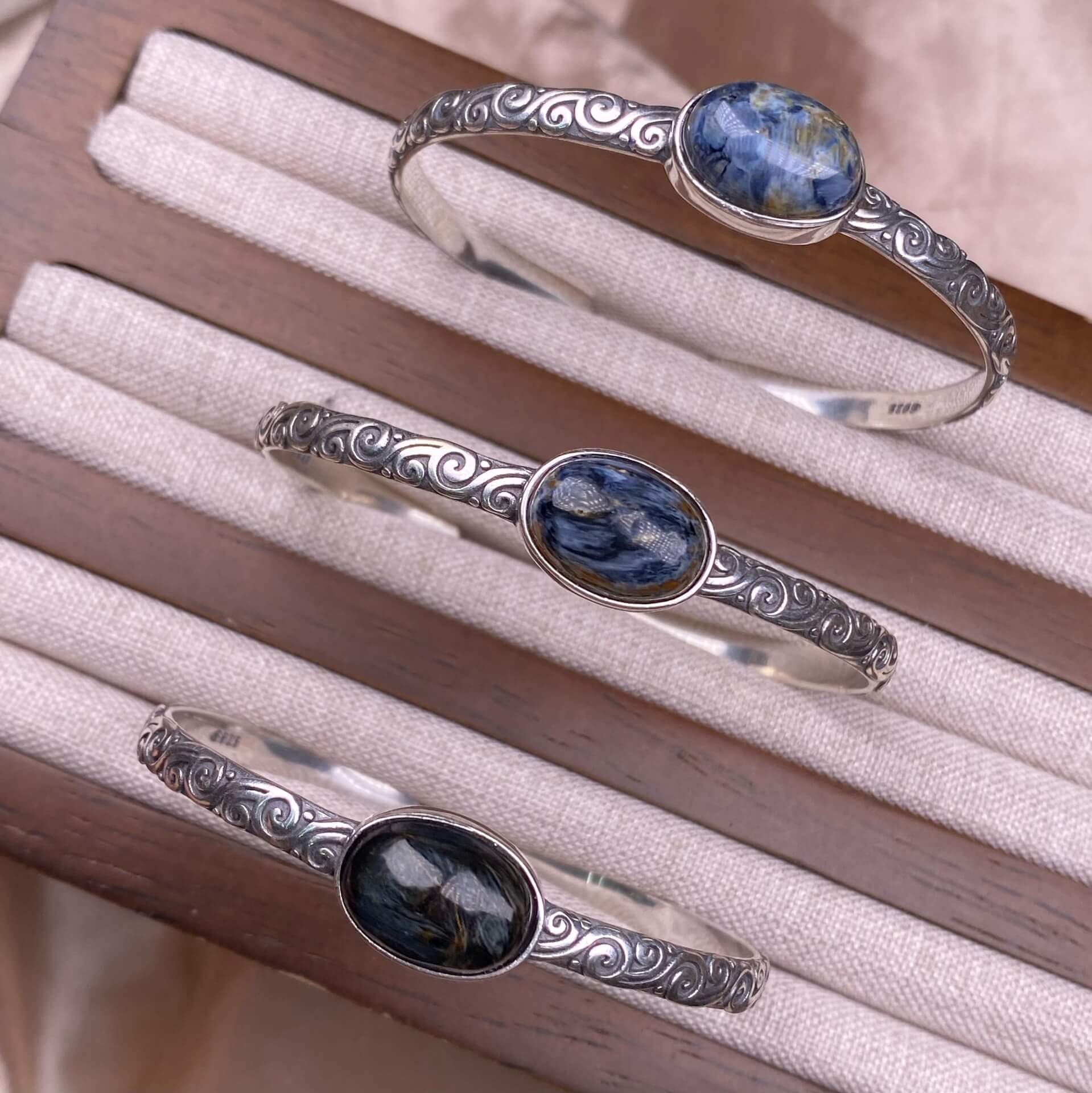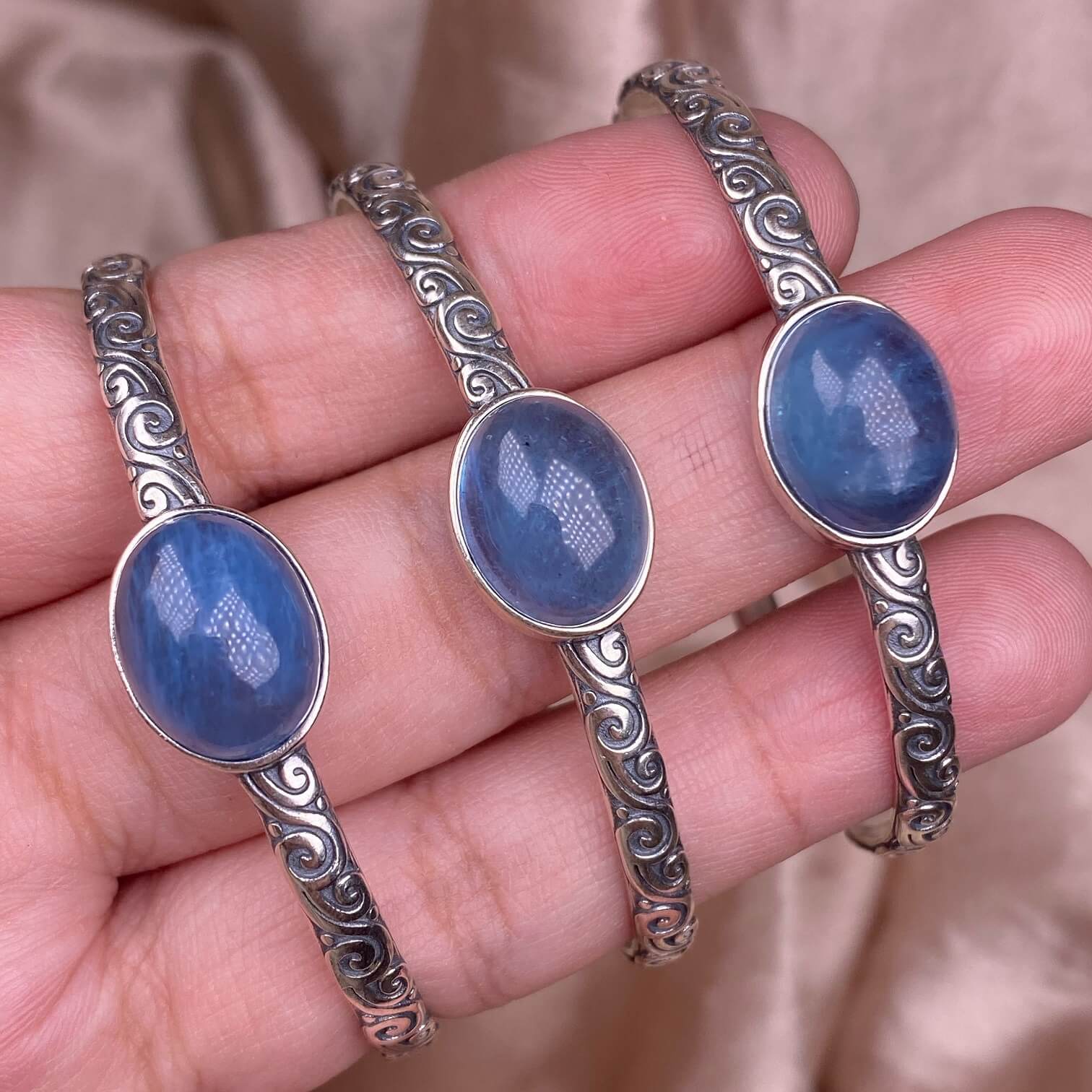 Old wax, green dragon crystal, south red, rose crystal, blue crystal, Peter stone bangle bracelet S925, silver inlaid, retro open bracelet