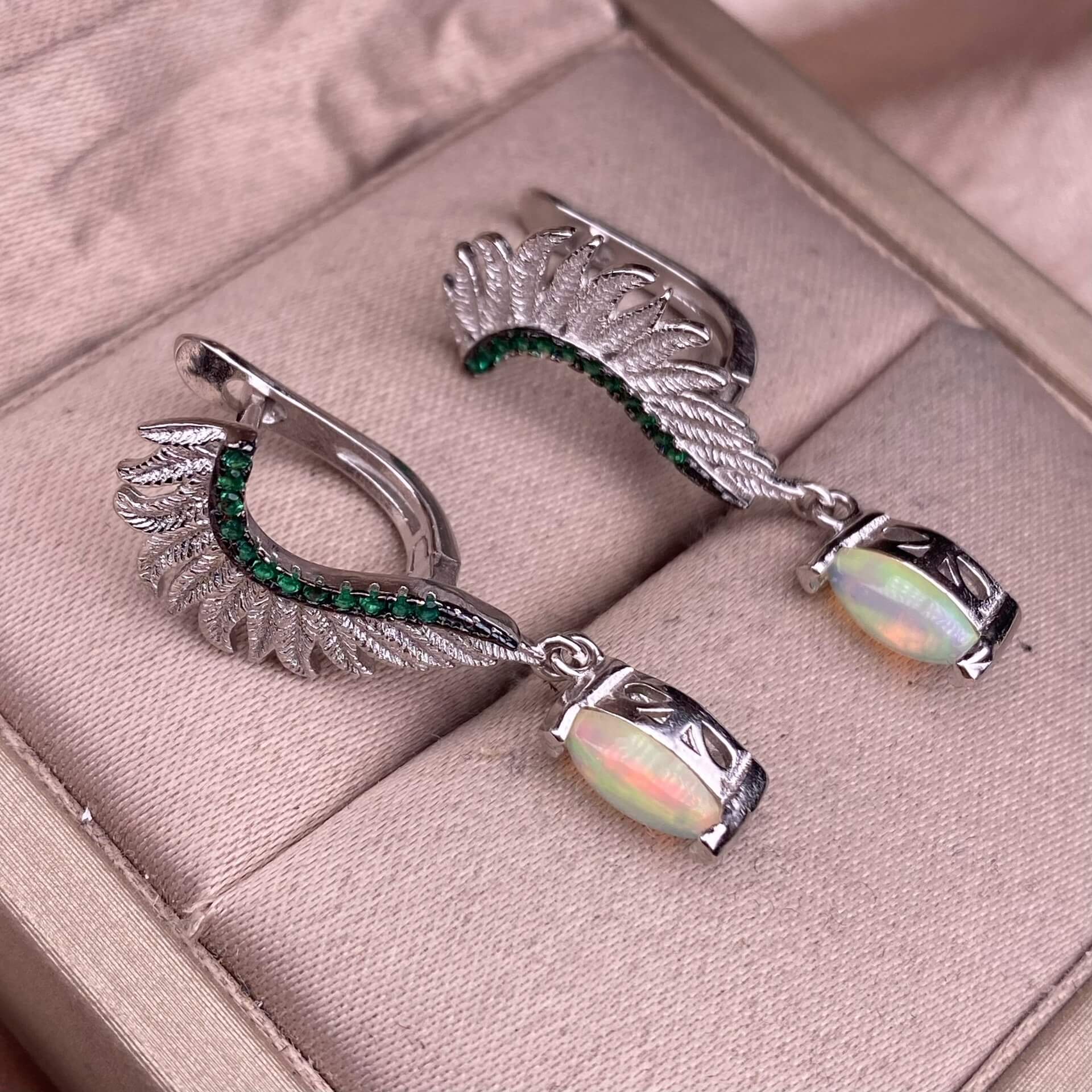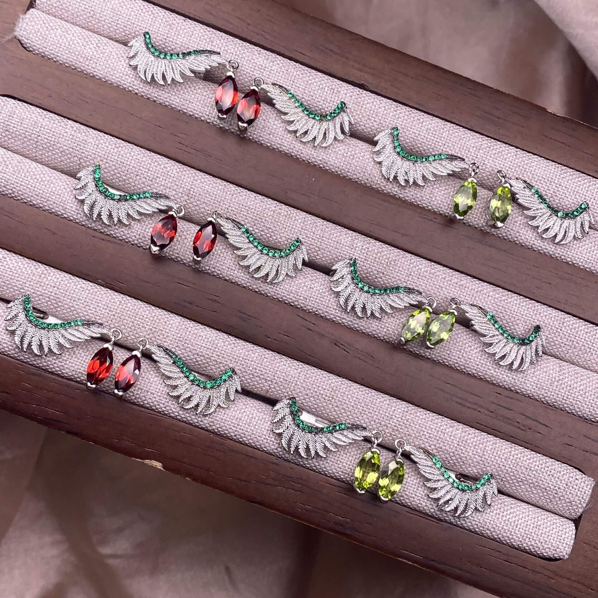 Opal Peridot garnet earrings S925, silver inlaid with full diamonds, feather style, Aubao colorful ear buckles, fashionable OL earrings, horse eye Opal