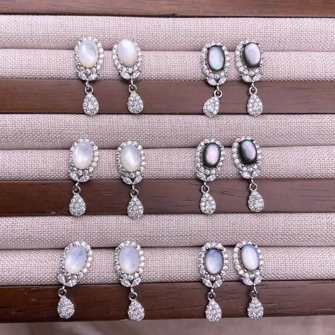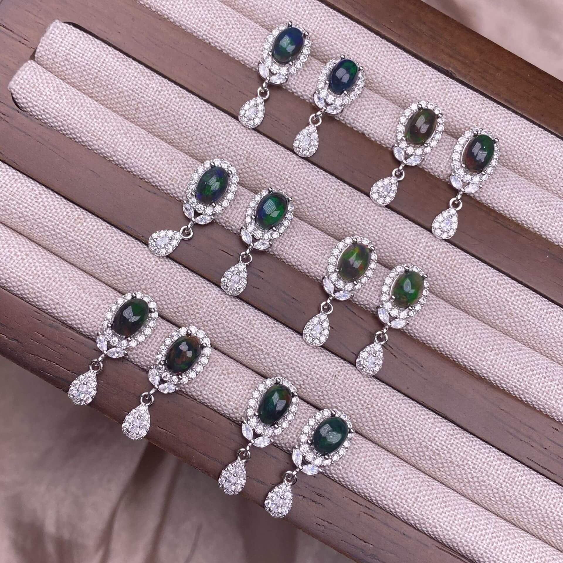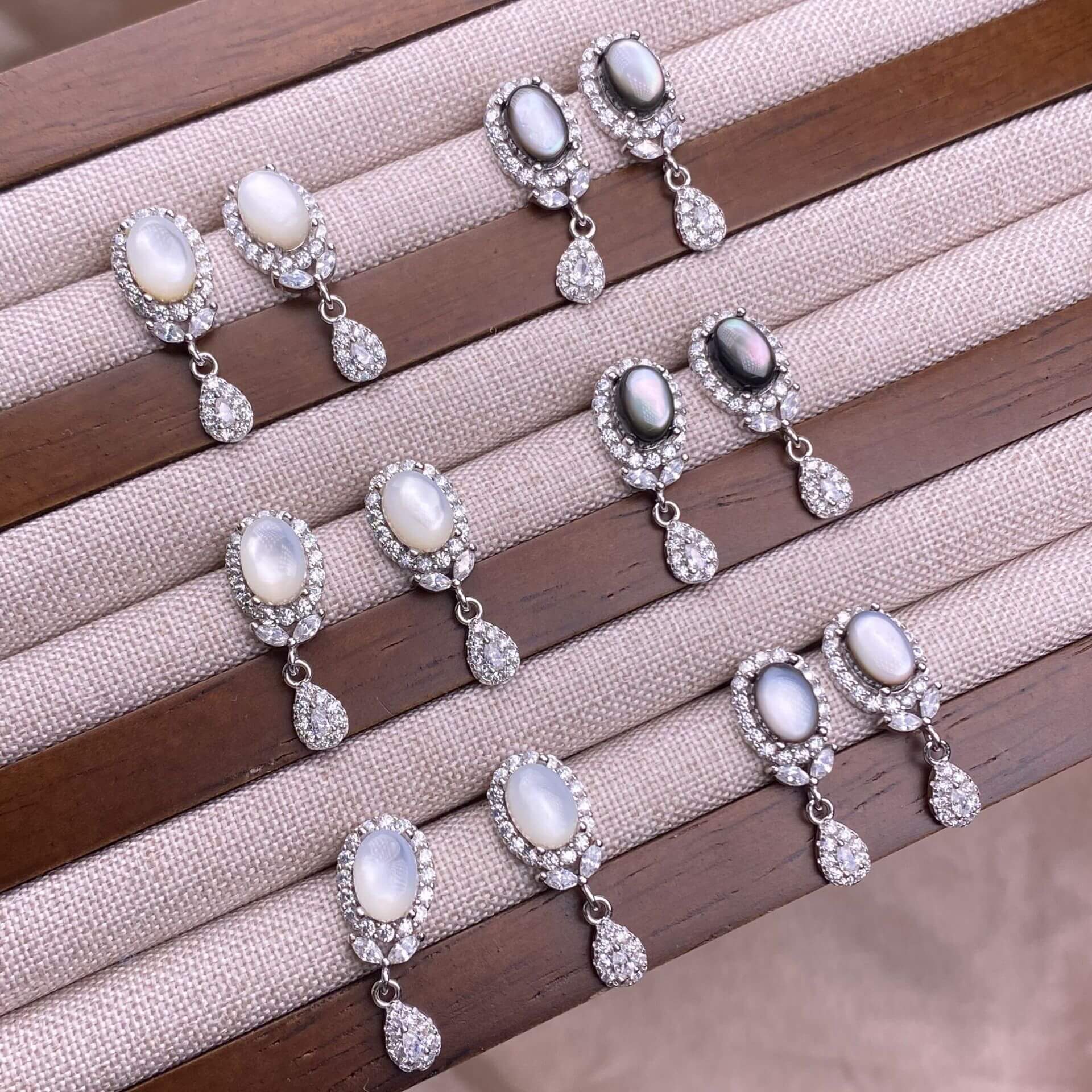 Black Opal Black Shell White Shell Turquoise Purple-toothed black, golden sunstone, garnet earrings S925, silver inlaid with full diamonds, feather style, fashionable OL earrings