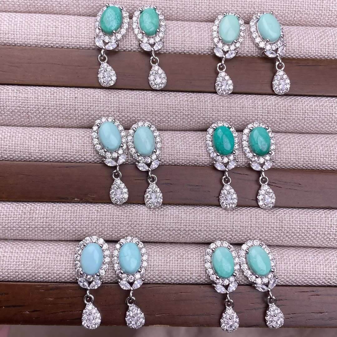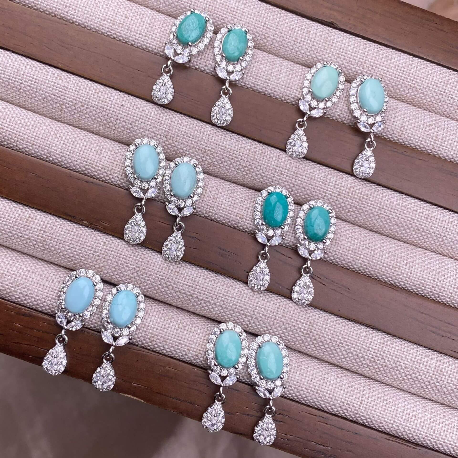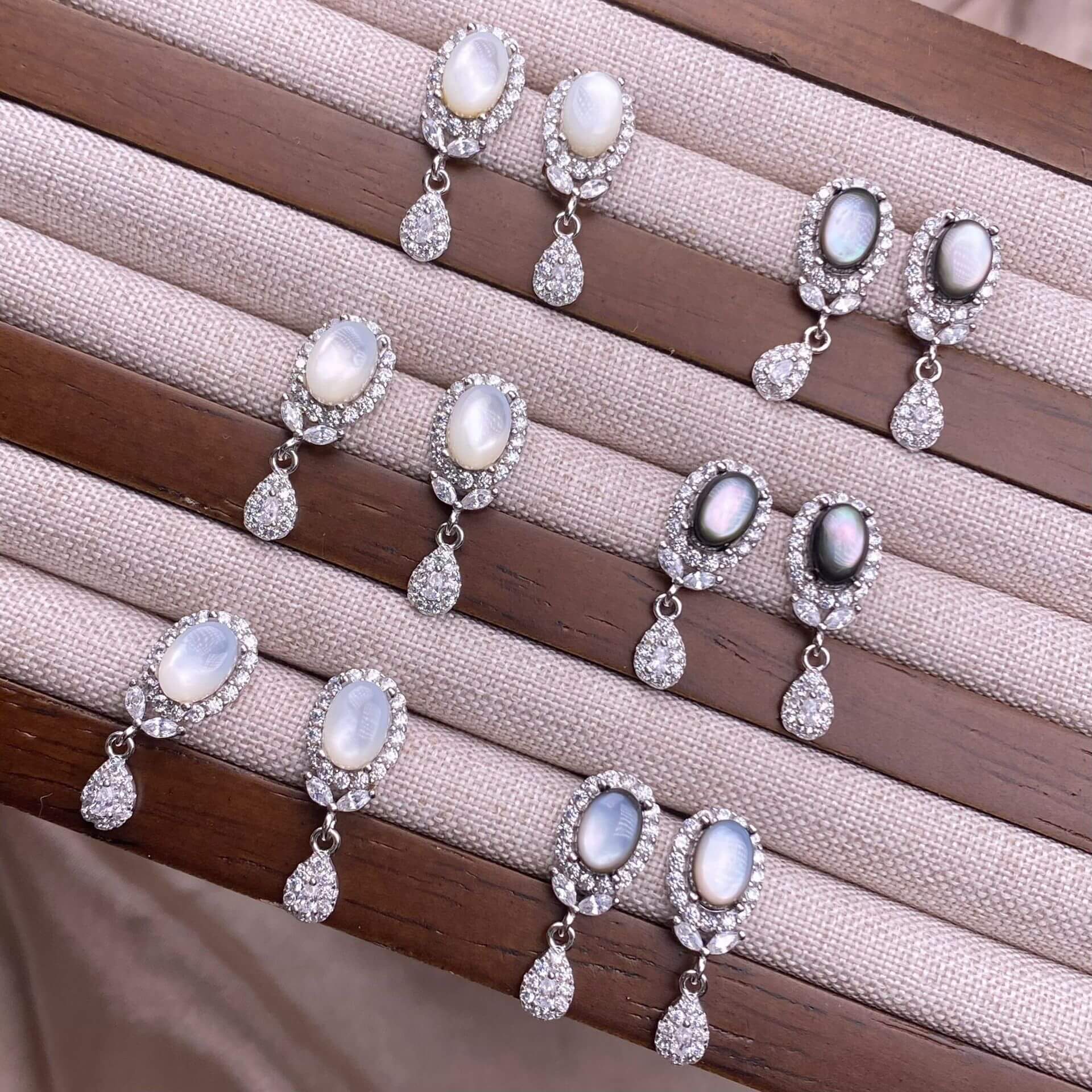 Black Opal Black Shell White Shell Turquoise Purple-toothed black, golden sunstone, garnet earrings S925, silver inlaid with full diamonds, feather style, fashionable OL earrings
