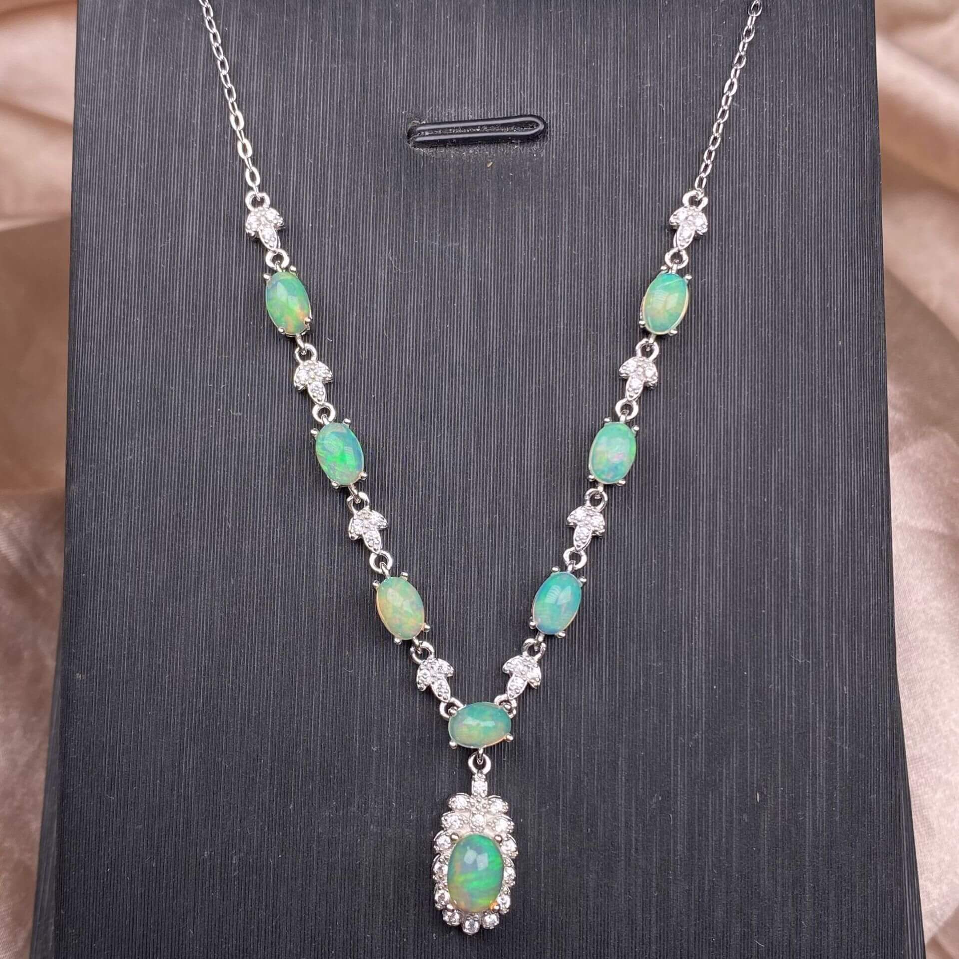 Opal/Black Opal/Turquoise/London blue topaz/Olivine/Garnet/ Hetian jade/Amethyst/Topaz S925 necklace, silver inlaid with full diamonds, exquisite light luxury evening wear chain, Opal collarbone chain, fashionable office lady
