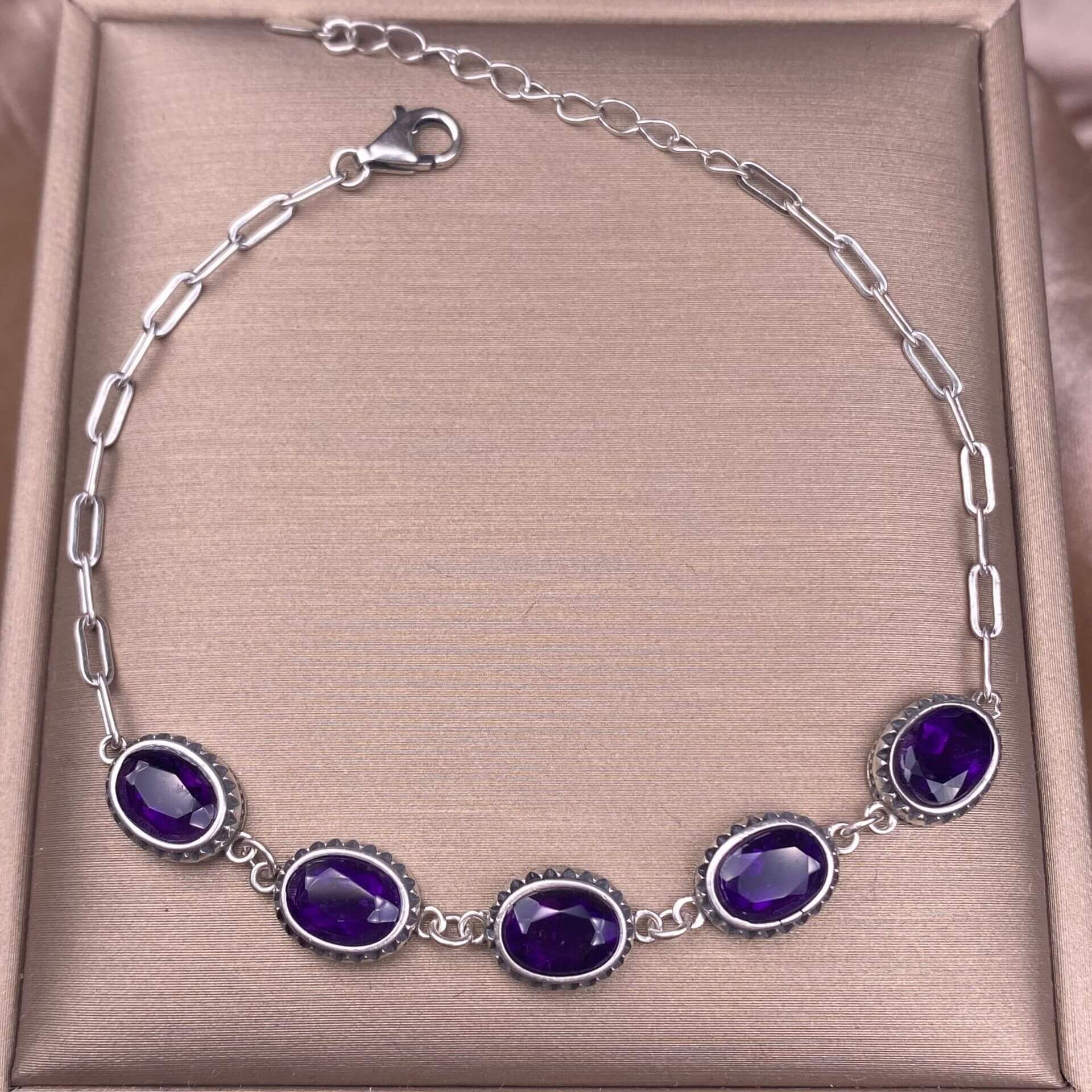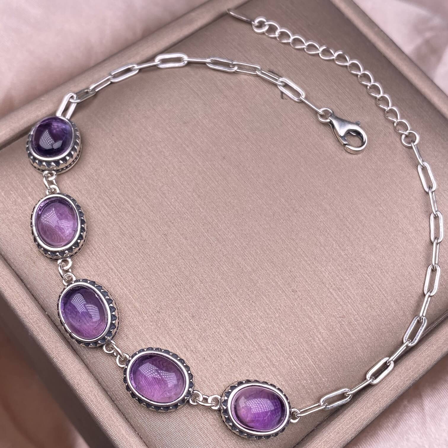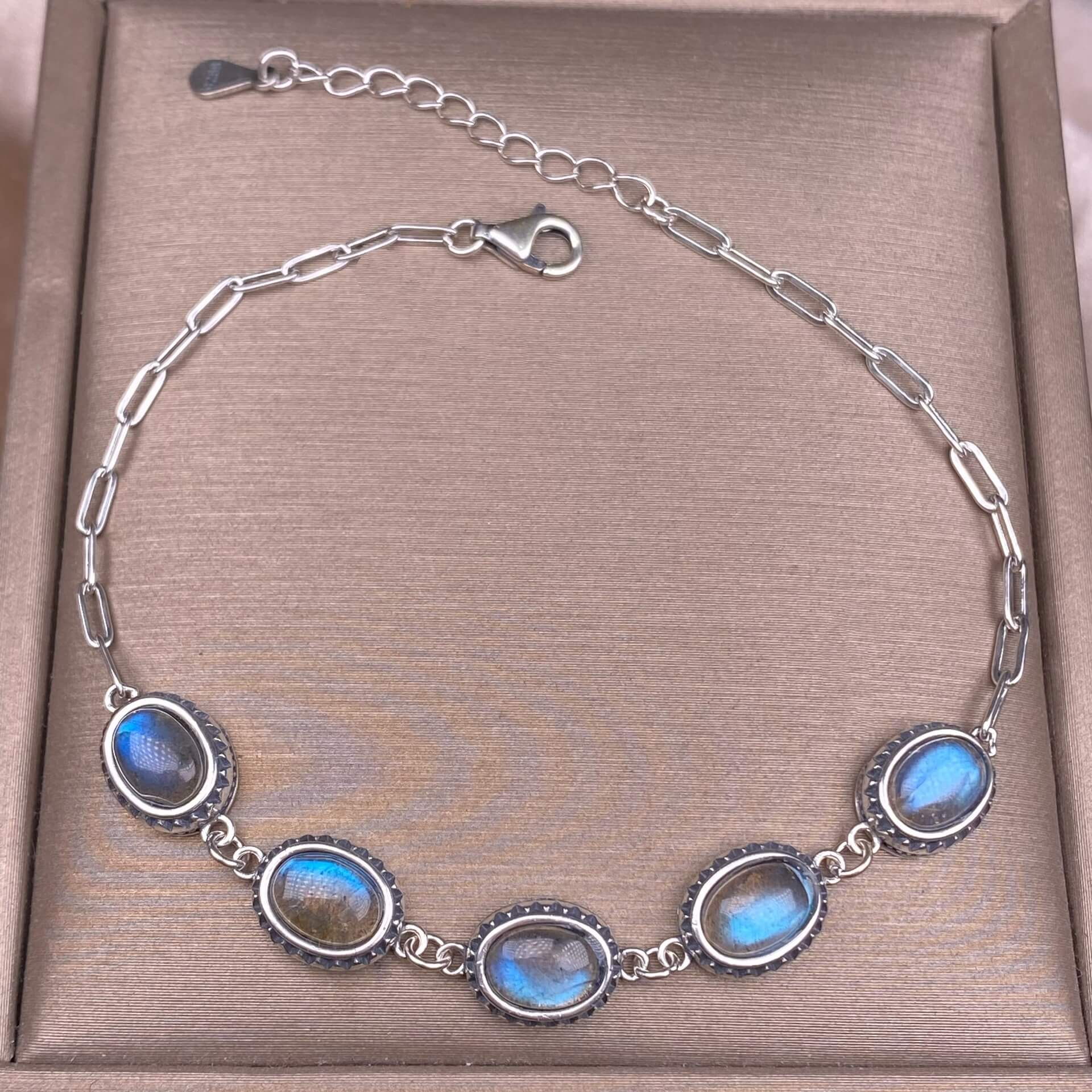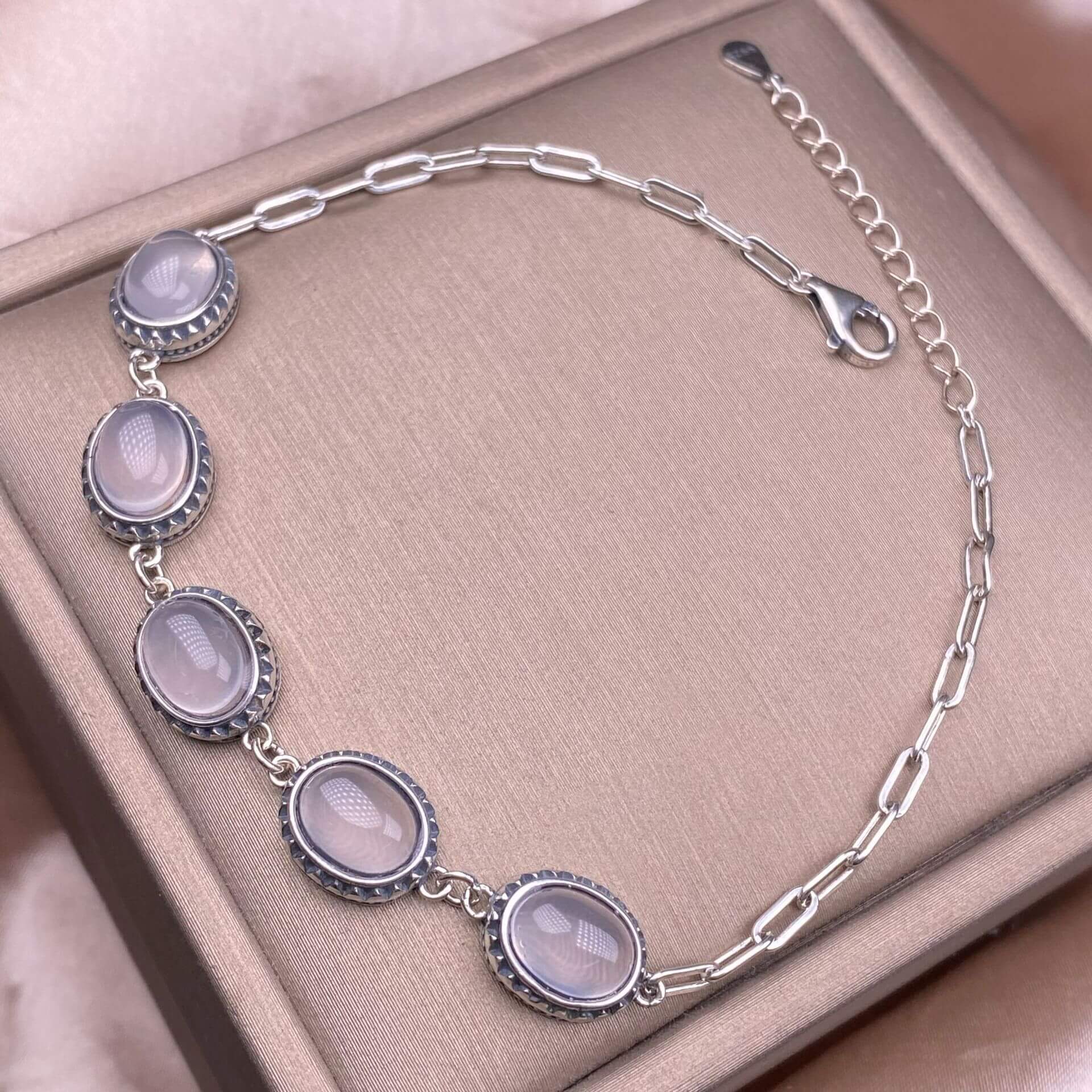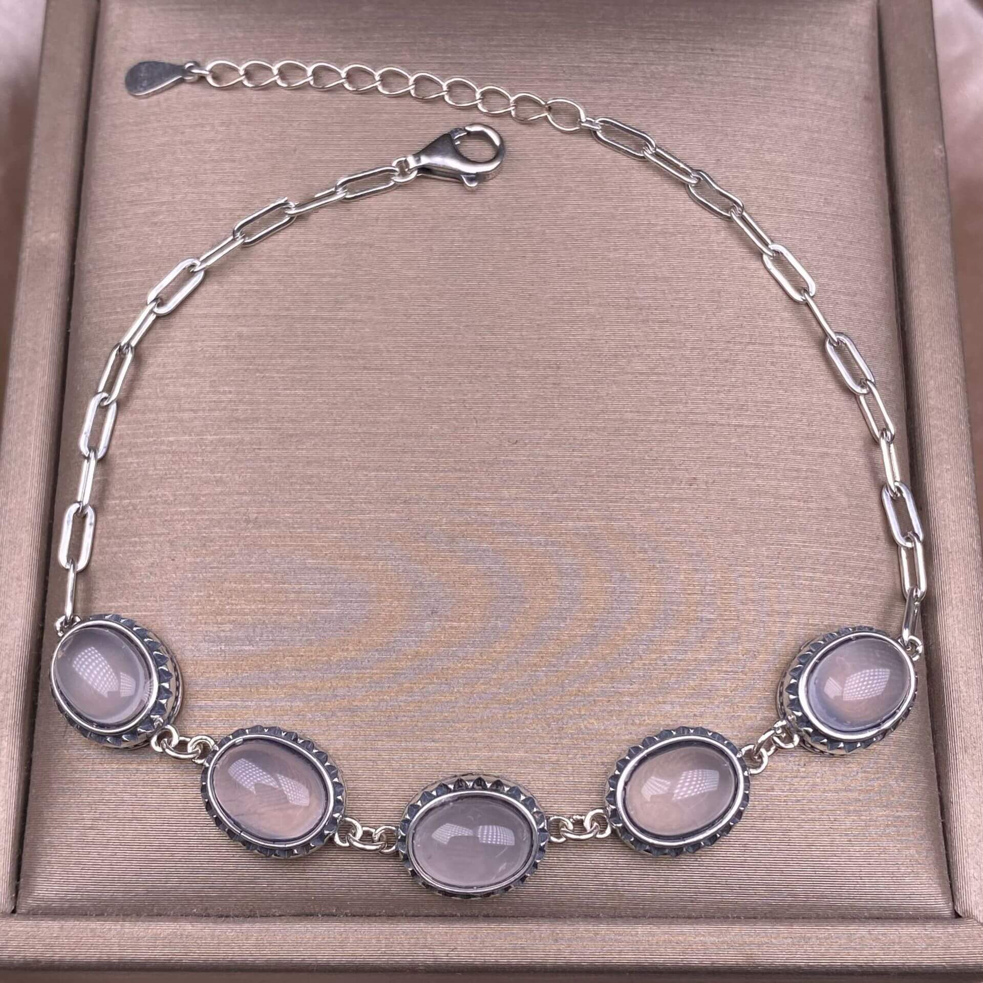 Blue moonlight, grey moonlight, rose quartz, amethyst, Larimar, turquoise, garnet, Golden Sun, yellow quartz Bracelet S925 silver inlaid silver jewelry chain Trendy Jewelry 2025