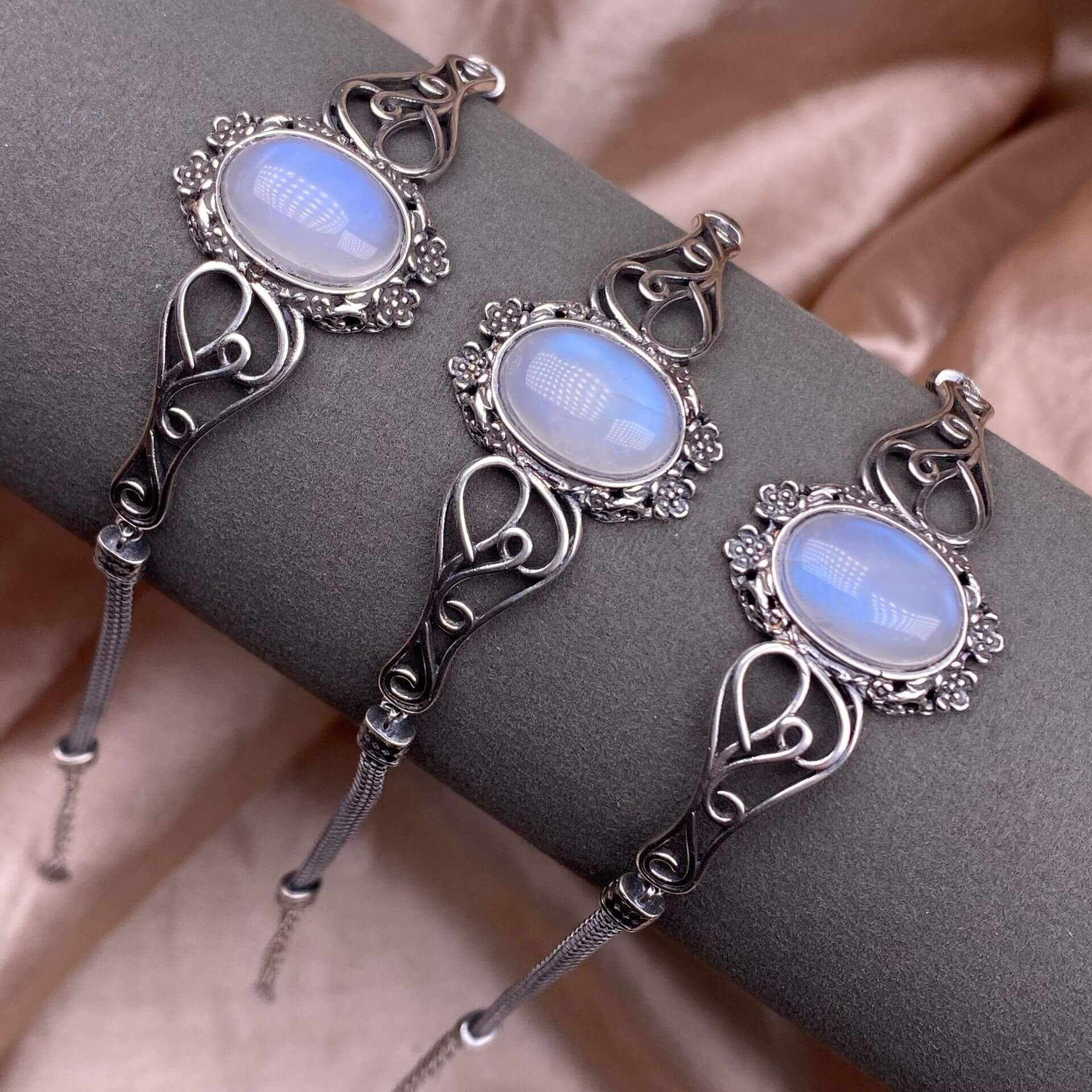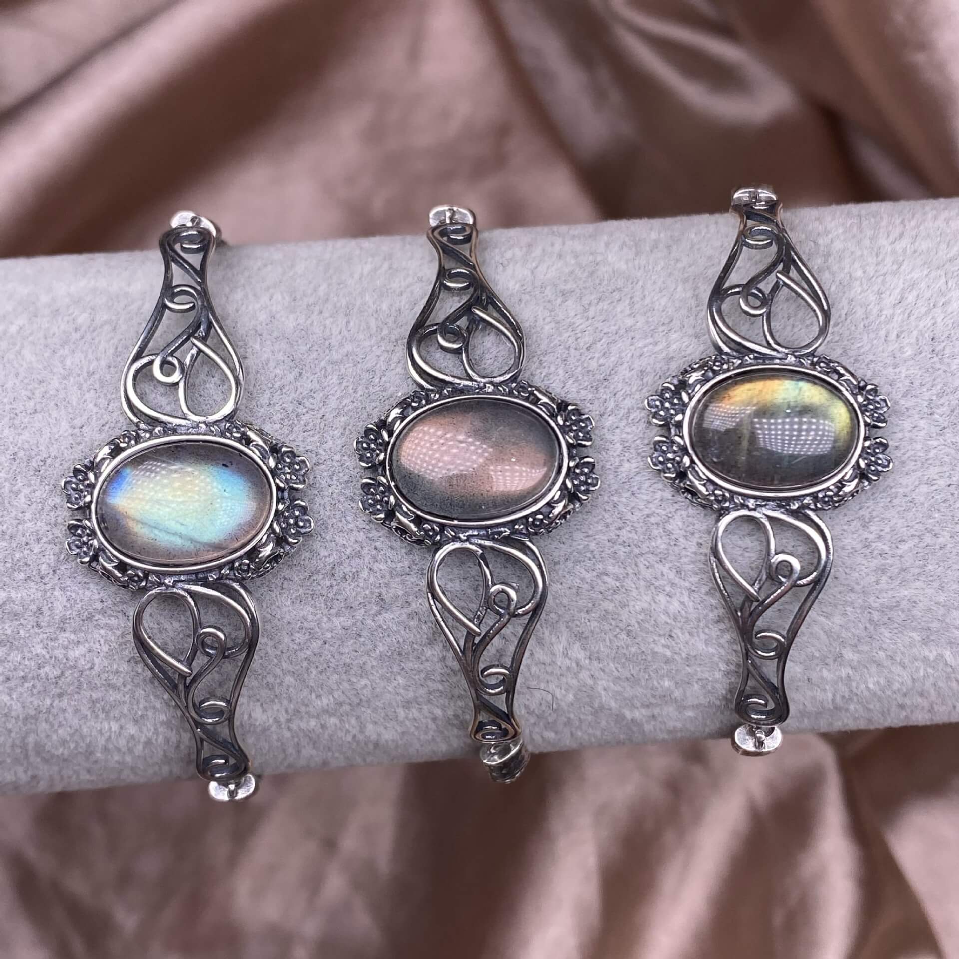 Garnet Blue Moonlight Grey Moonlight Amethyst Purple Dragon Crystal Ghost Stone bangle S925, silver inlaid with retro silver, personalized commuting, aged and fashionable women's colored gemstone crystal jewelryTrendy Jewelry 2025 GMSBa1