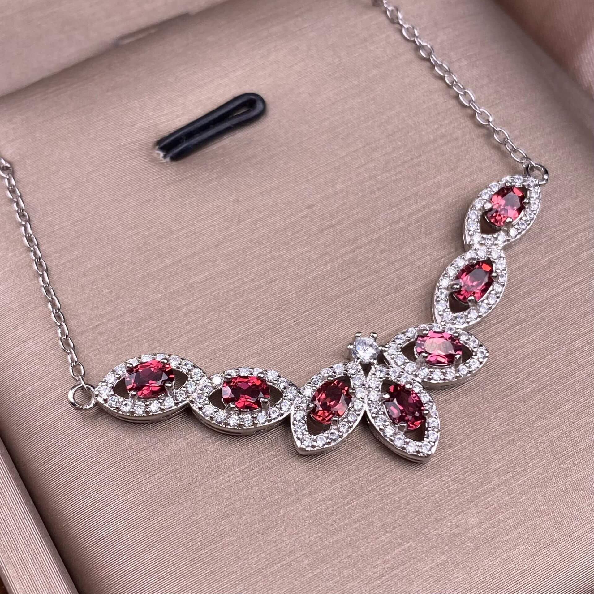 Tanzanite, pink topa, garnet, diopside S925 necklace, silver inlaid with full diamonds,s925 collarbone chain, silver-encrusted little rabbit children pendant, garnet quality, pure water flawless