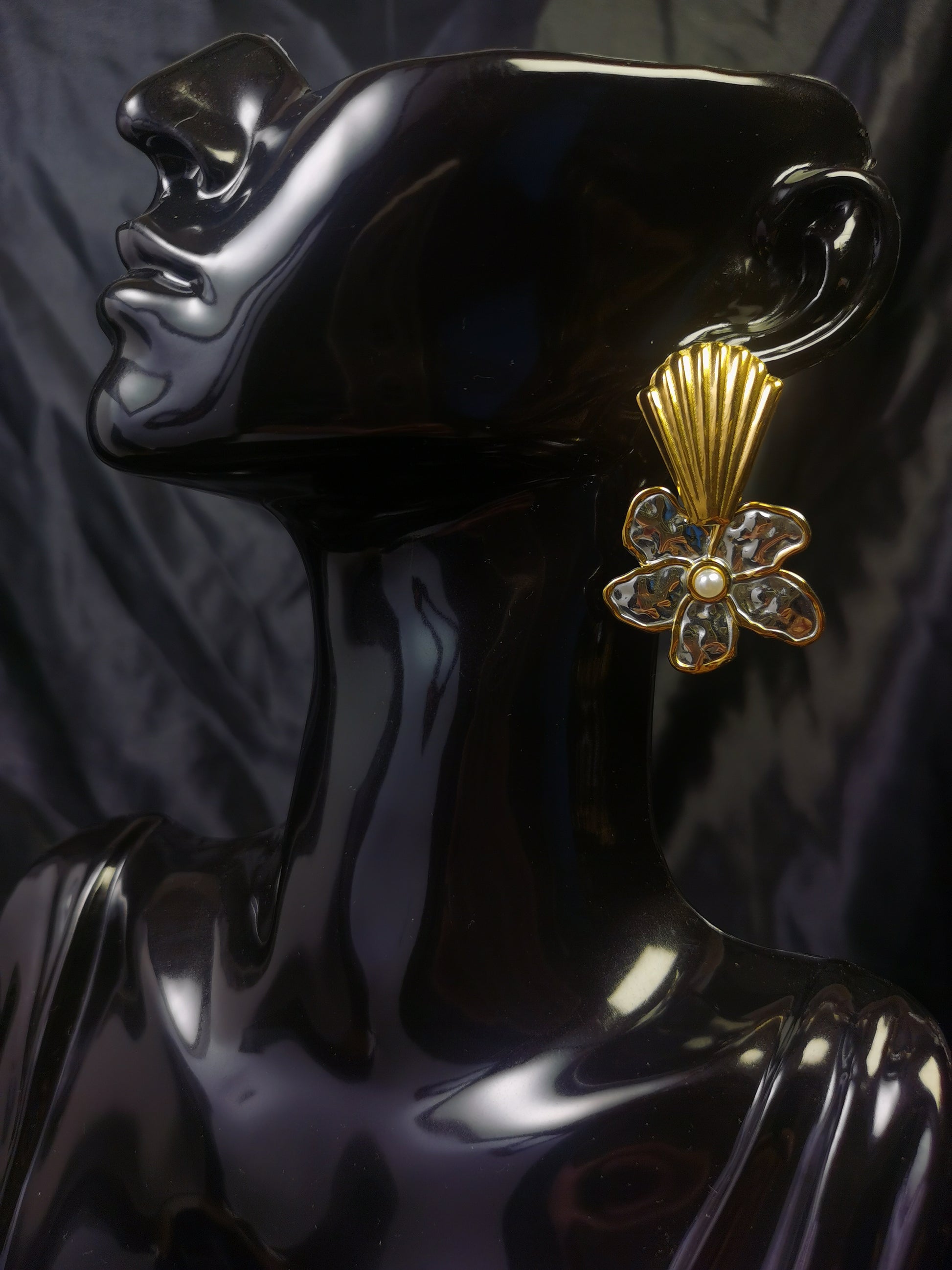 Shell Shaped Earrings 18k gold-plated Titanium Steel Silver Flower pendant GMJE26
