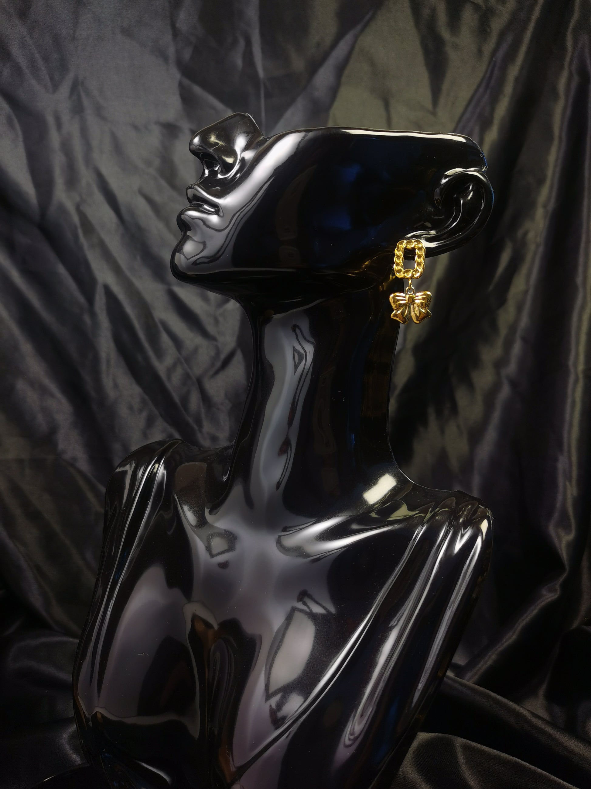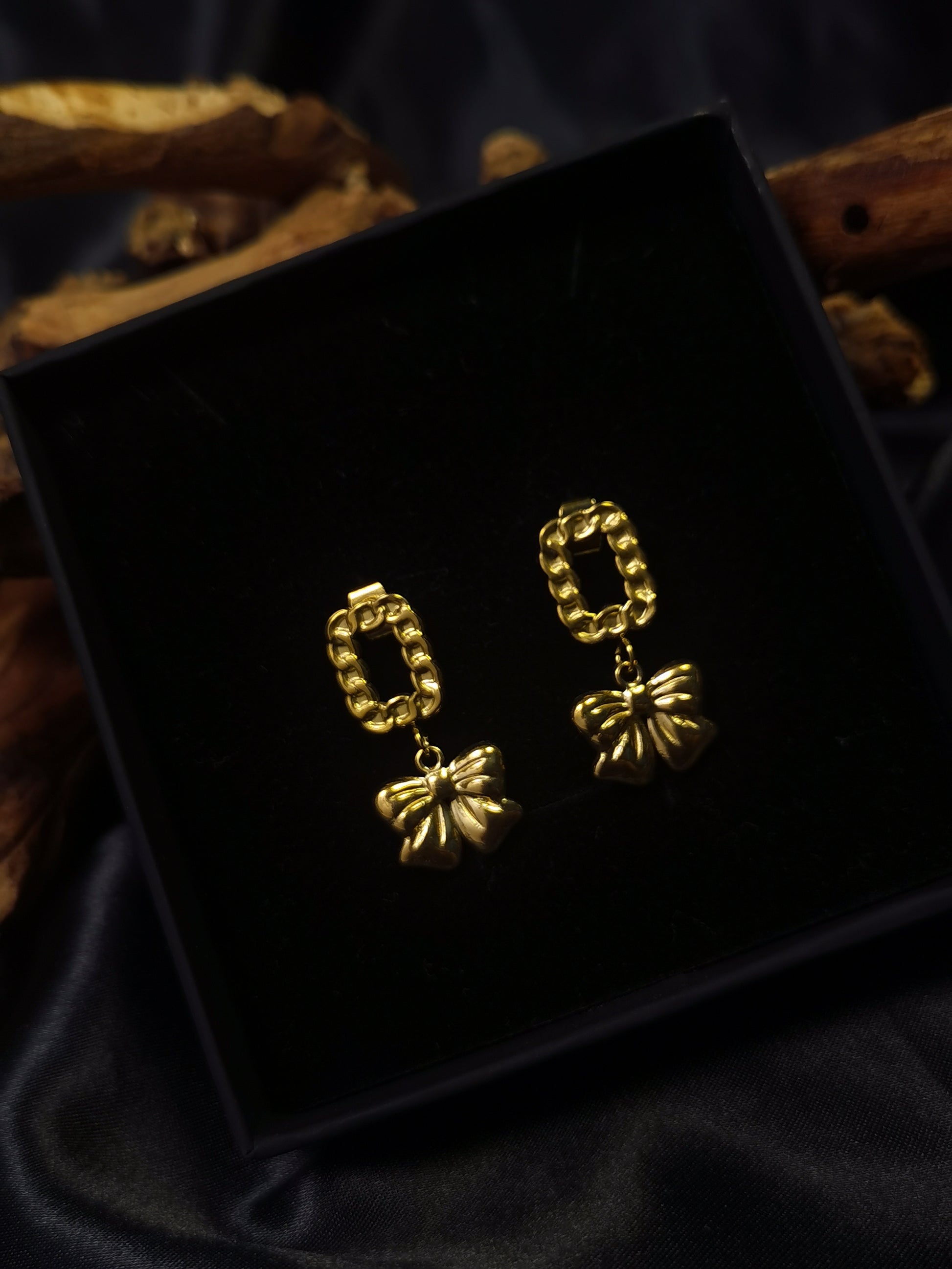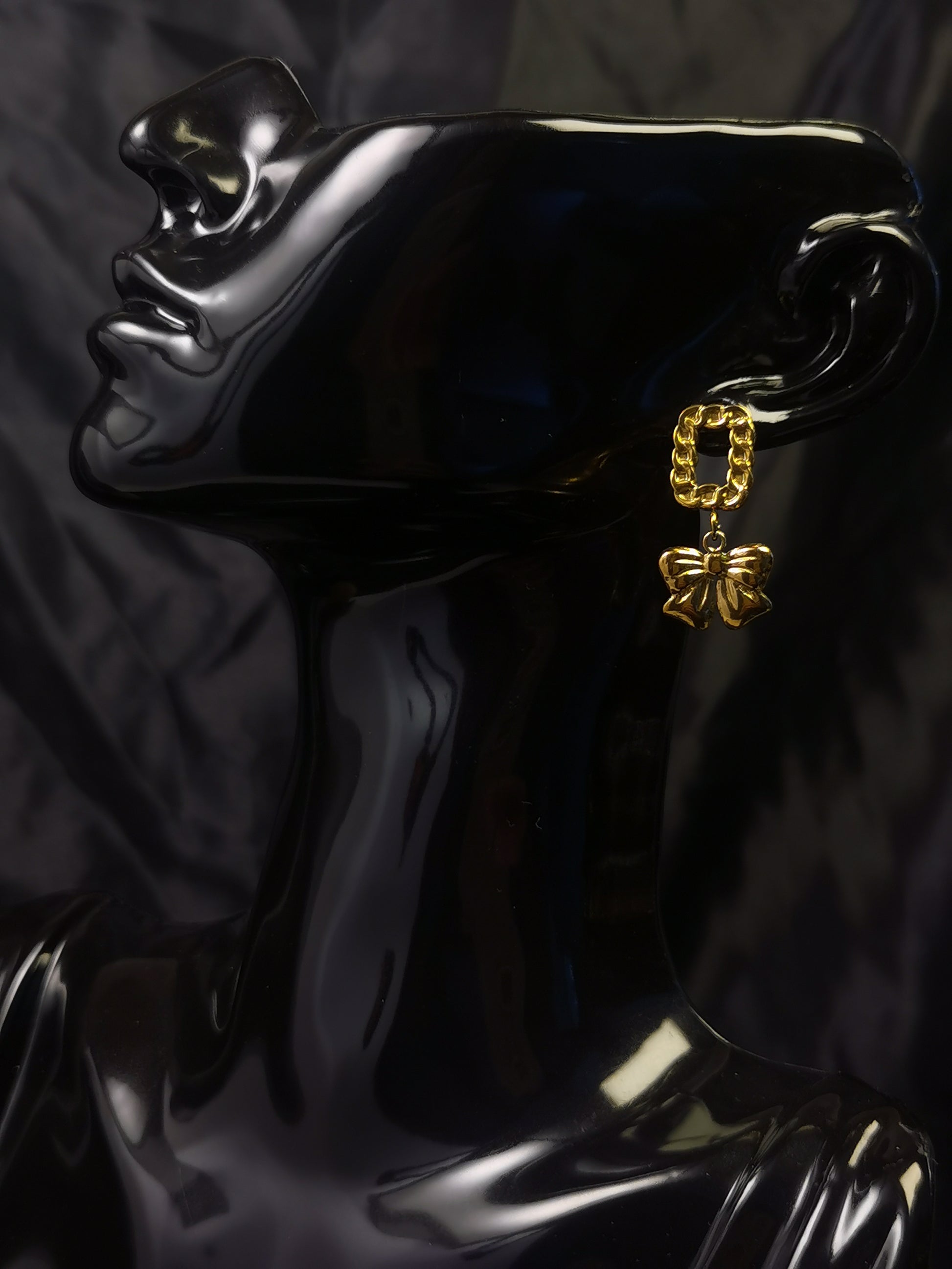 Cuban square Earrings 18k gold-plated Titanium Steel bowknot GMJE12