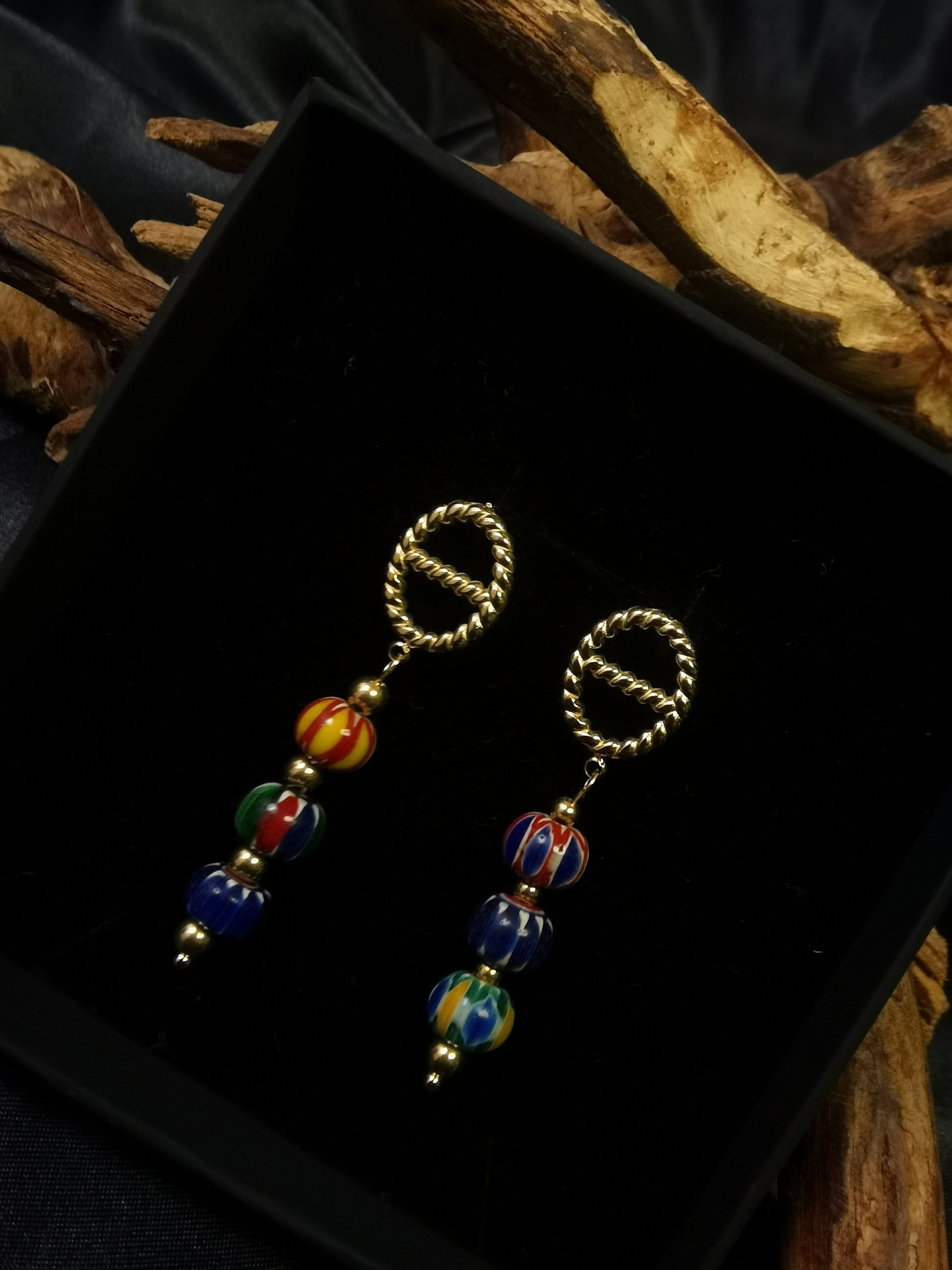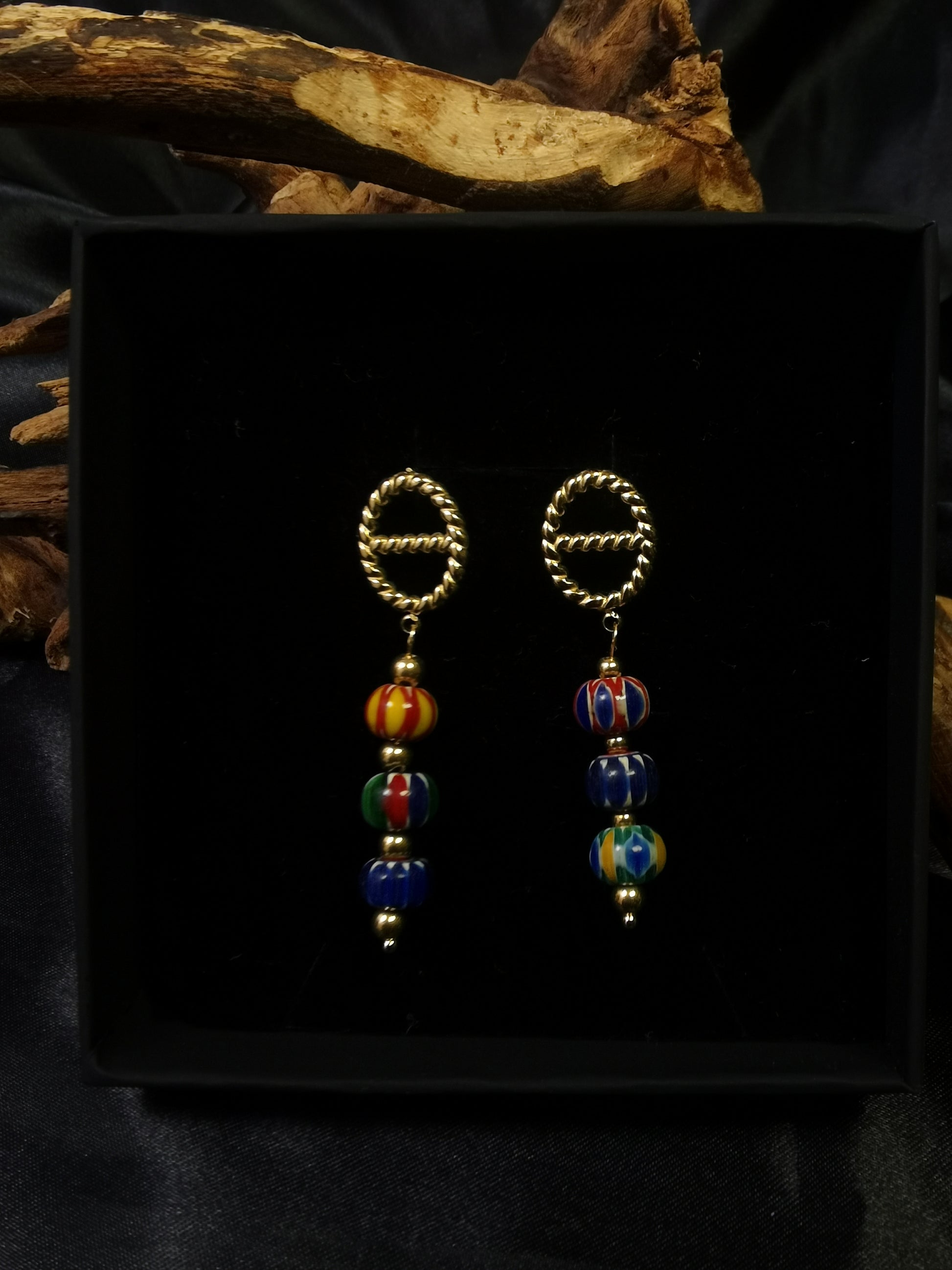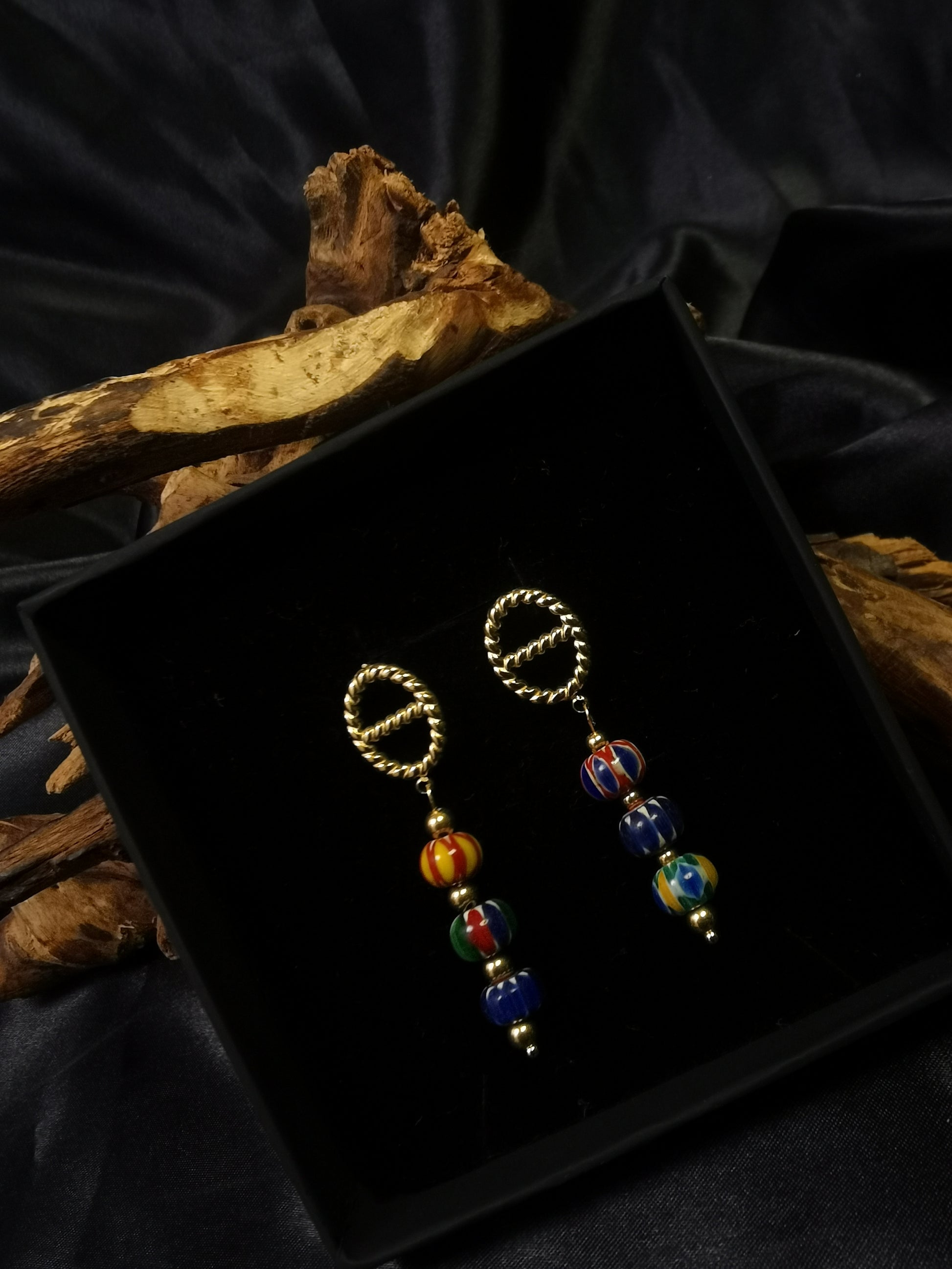 Pig Nose Earrings 18k gold-plated Titanium Steel Nepal Stone pendant GMJE27