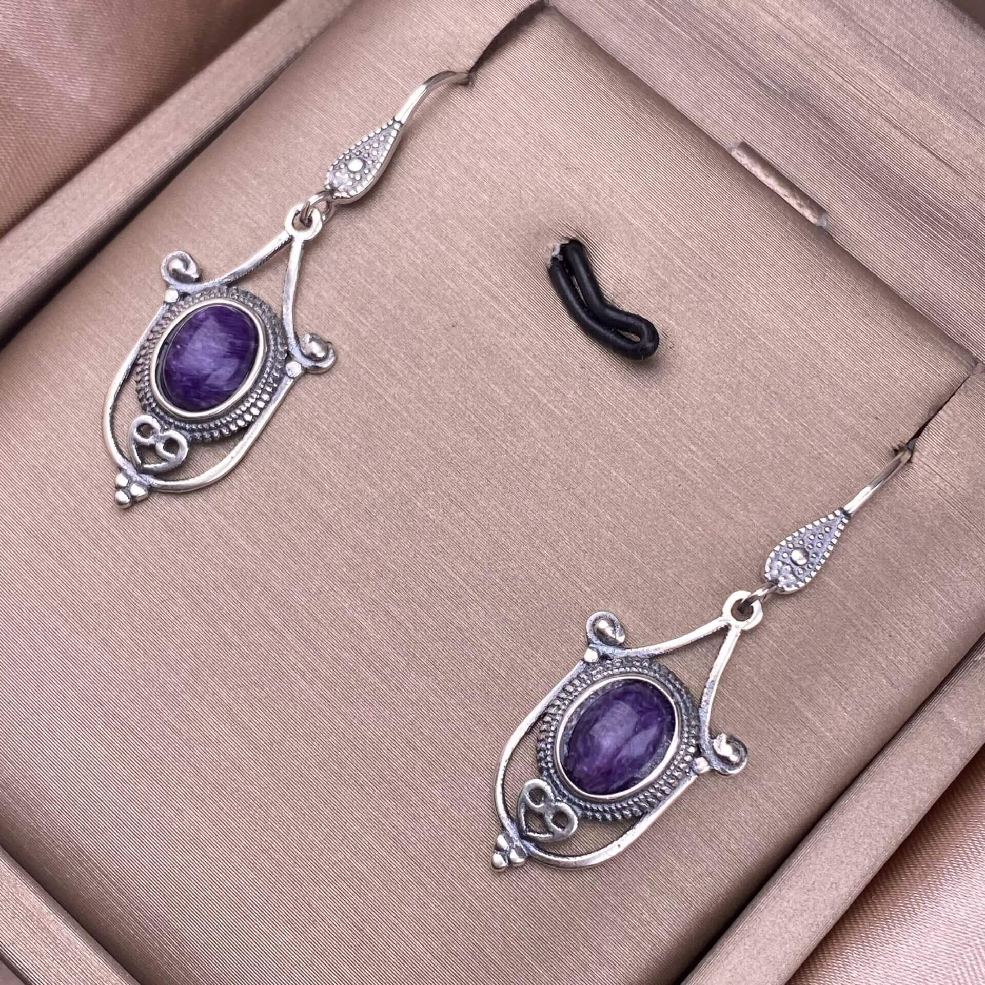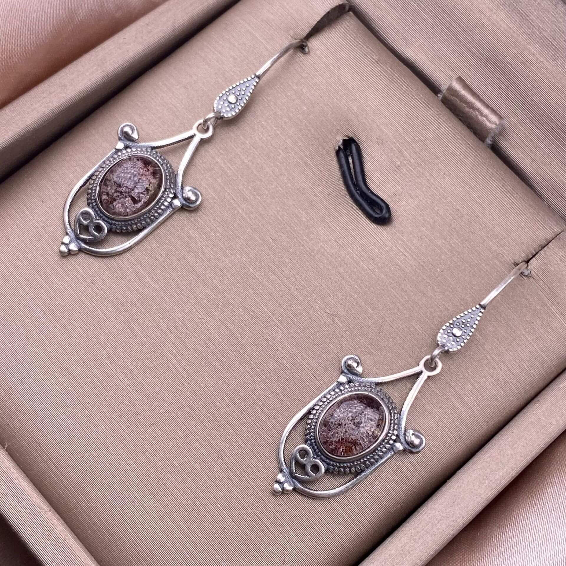 Old wax, cut garnet, round garnet, grape stone, opal, flower amber, tea crystal, grey moonstone, turquoise, aquamarine, ghost stone, sea pattern stone, amethyst earrings S925, silver inlaid exquisite and light luxury women's earrings