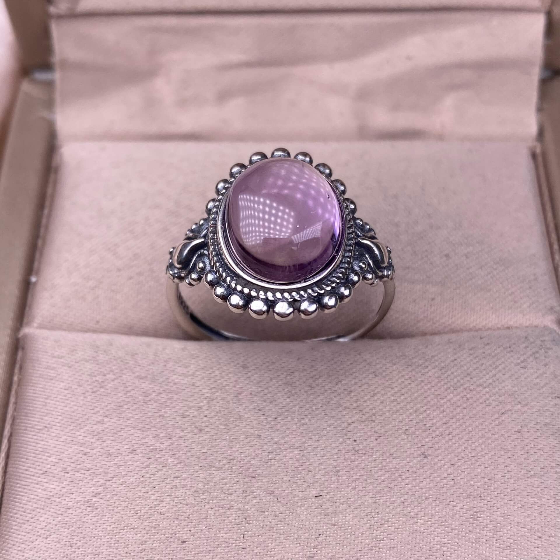 Larimar sea stone, grey moonstone, amethyst S925 in silveThe S925 silver grey moonstone ring, set with retro silver, is a new women's colored gemstone crystal jewelry that is versatile for commuting